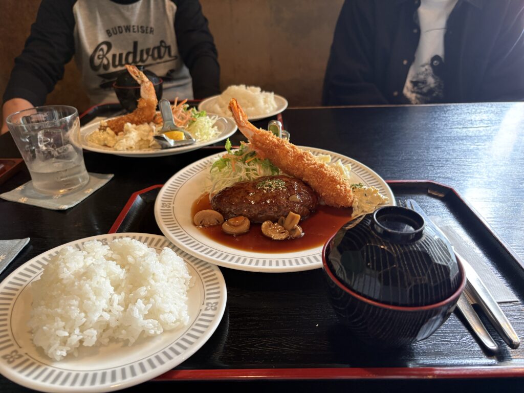 ハンバーグエビフライ定食