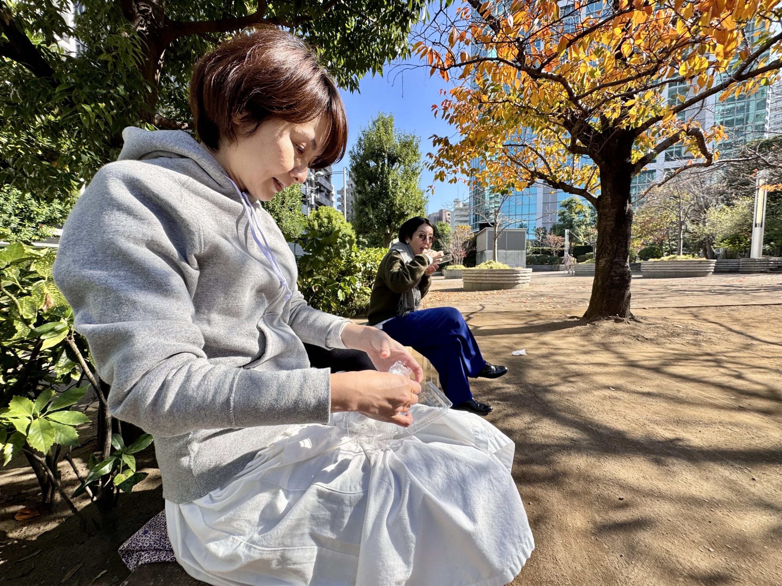 白金の公園でemiちゃんとレシーヘンさんと松島屋さんの塩大福を食べた。息子を出産する前にがむしゃらに仕事をしていた時期があったお陰で出会えたふたり。オープンルームの常連さんと長い年月を経て、公園のベンチに並んで大福食べる未来は想像してなかった。笑
