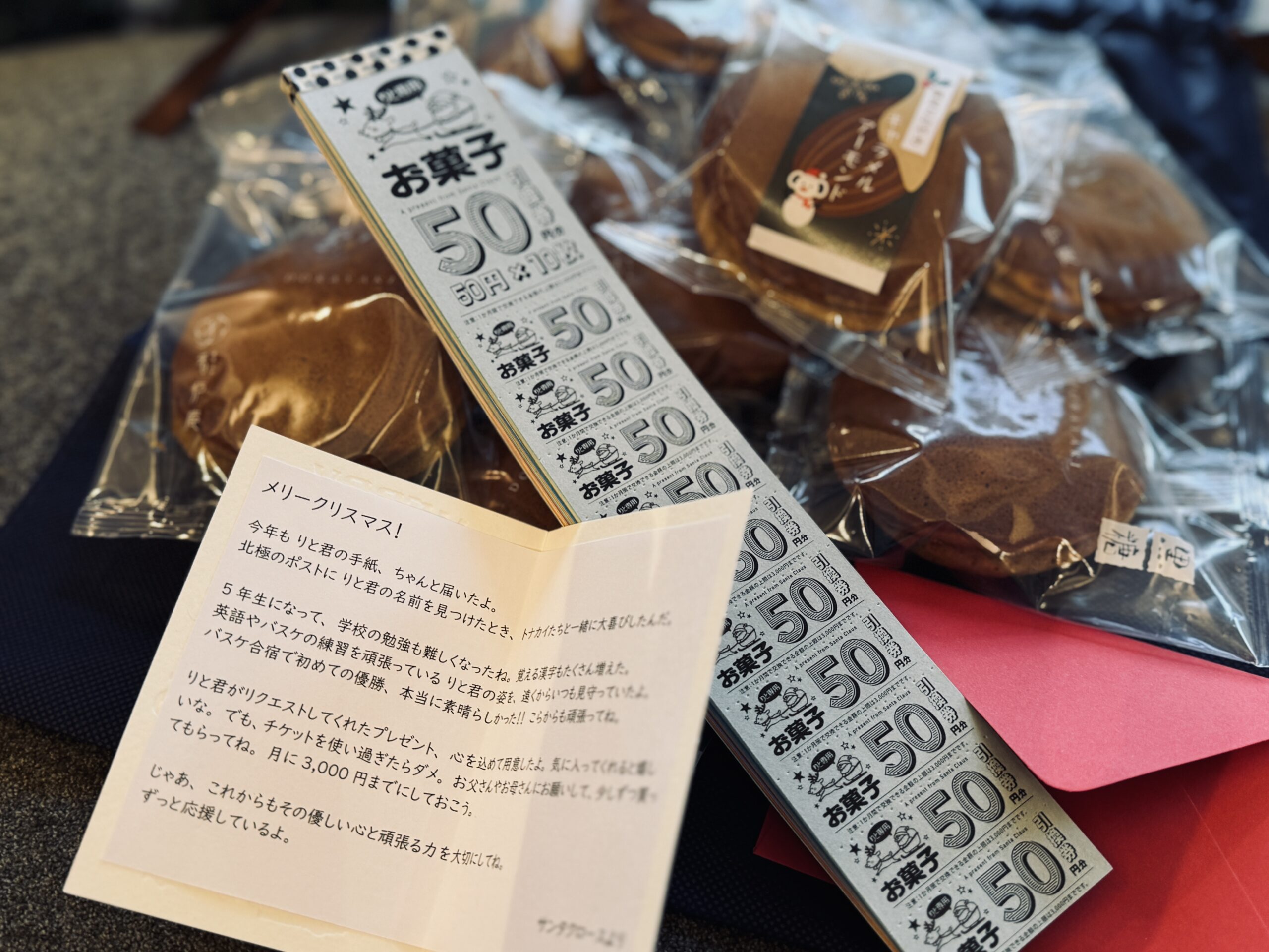 それにしても我家のサンタは芸が細かい。リト専用お菓子チケット37枚綴りはご丁寧に50円づつ全てミシン目入り!! 来年も来るのかな〜?
