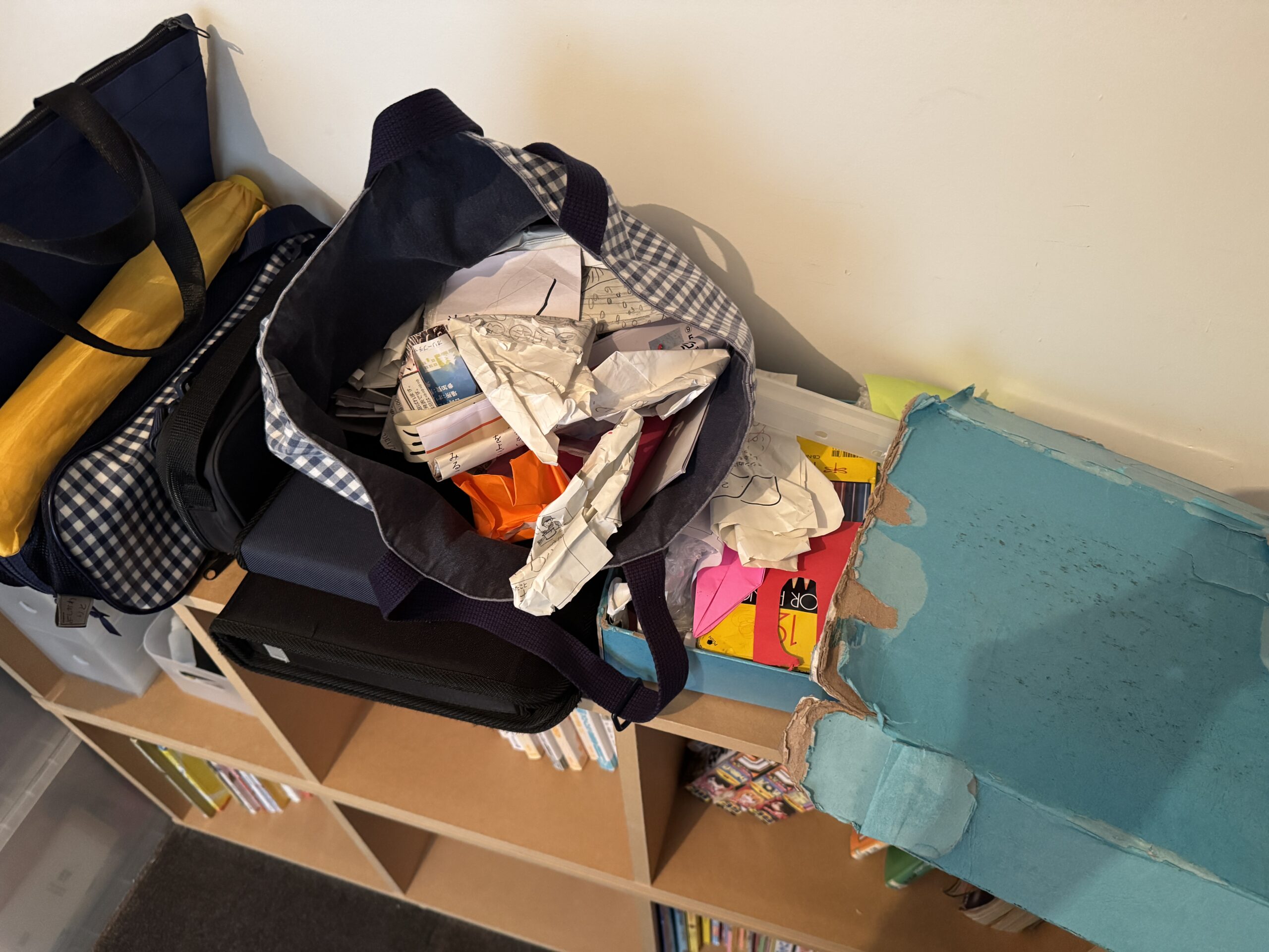 写真は全然関係ない、息子の部屋の片隅にあるうんざりする一角。学校から持ち帰らせらた物たち。手提げ袋の中にはくっしゃくっしゃのプリントやテストや落書きされたノートの切れ端… お道具箱の蓋はキレイに洗って干された牛乳パックみたいに広がっているし、チラリと見える色鉛筆の缶ケースの中はもちろん空っぽさ。「小学生男子なんてそんなもんだよ」とか言うけどさ、みんながみんなじゃないよね。