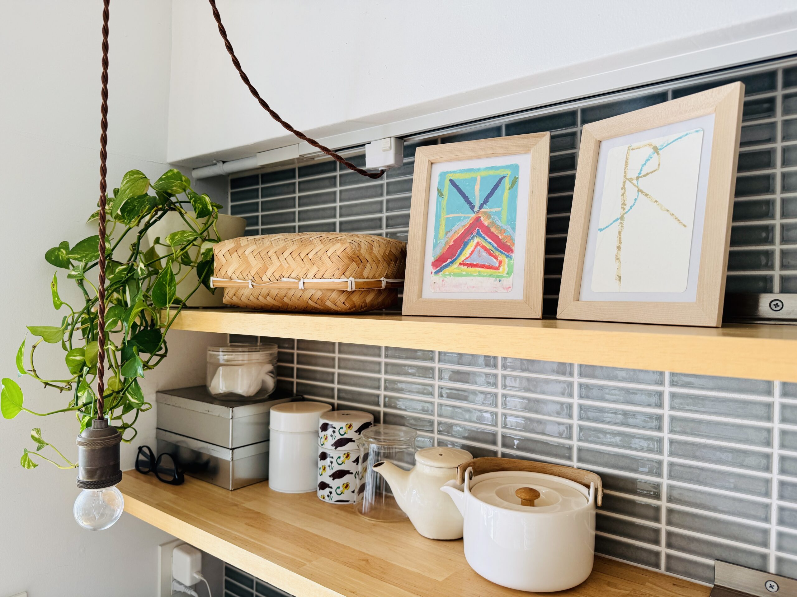 先日のワークショップで、アイシングクッキーの前にみんなでポストカードにお絵描きしたやつ。100均の額に入れてさっそく飾ったよ。良き良き◎