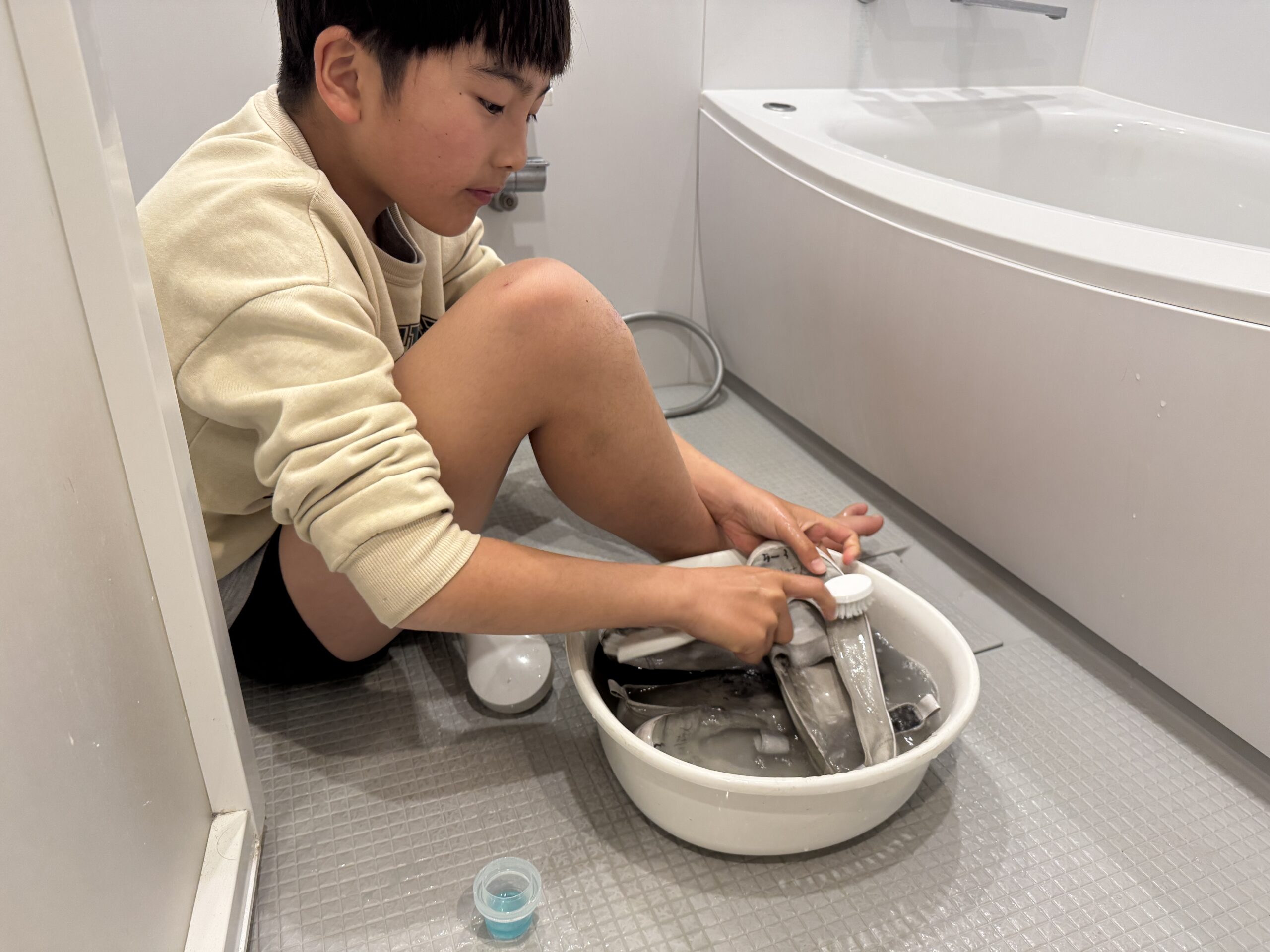 今日は写真がないので週末の一枚。前任の父ちゃんに「6年生になるんだから、もう自分で洗いな」と言われた人。初めての上履き洗いをしながら、「もう持って帰ってくるのやーめよ」とボヤいていた。苦笑