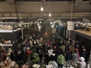 市ではたそがれ農園による餅つきパフォーマンス。炊き立てのお米のなんと美しい輝き。そして素晴らしい香り。湯気からイメージしていただきたい。