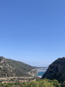 entre unas curvas se puede ver Barcelona! Es una curva muy especial, sobretodo en días como el de hoy con el cielo y el mar tan あお!os imagináis conducir por esta carretera? Algun día quizas! Me recuerda al paseo desde la playa de Kamakura hasta el mirador Inamuragasaki! Las curvas para pasar la montaña y acceder al mirador.