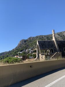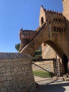 En otra de las curvas de repente aparece un edificio de arquitectura especial, de ladrillo rojo. Hoy es un Restaurante. Pero el siguiente edificio es todavía más bonito ya que es una construcción diseñada por Gaudí. Somos unos privilegiados en tener esta carretera tan especial!
