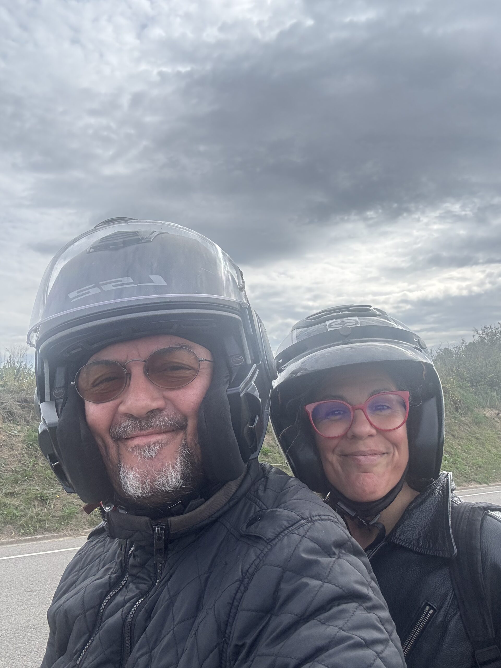 Hoy hicimos una ruta fantástica, un par de horas, de paseo conduciendo entre viñas otoñales, comiendo kilómetros con una temperatura súper agradable, disfrutando, hermoso ver los cambios que regala esta época del año, los amarillos, ocres, rojos o granates . Me encanta esta época del año para ir en moto. Además, con la mejor copiloto baila conmigo en cada curva, en cada trazada, en cada recta, en cada kilómetro, al acelerar siempre es parte del momento. Al echar un vistazo y ver Montserrat, esa montaña siempre es bella de ver, de observar, de gozar, con el cielo azul moteado por algunas nubes, es momento perfecto para parar disfrutar y crearse alguna duda con la ruta, miramos el GPS, llamamos a un amigo para que nos quitase dudas y seguimos hacia el camino “correcto” vueltecita más o menos, al final lo importante es la ruta, ¿ el destino? Volver a casa después de una visita fugaz a un mercadillo y disfrutar de todo.