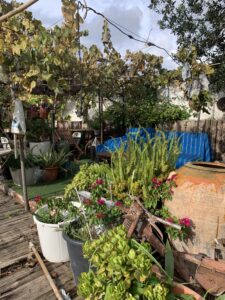 En verano me da mucho trabajo ya que cada día tengo que regar todas las plantas. Cortar las ramas secas, mover la tierra para oxigenar el suelo de las plantas….y ahora en otoño con las lluvias y la humedad de la noche, ellas solas se conservan.
