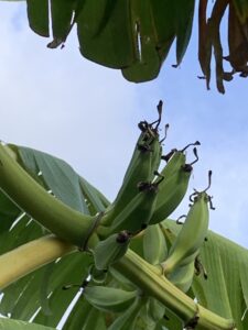 ahora los plataneros han dado su fruta, Banana y dentro de algunas semanas también podremos comer バナナ