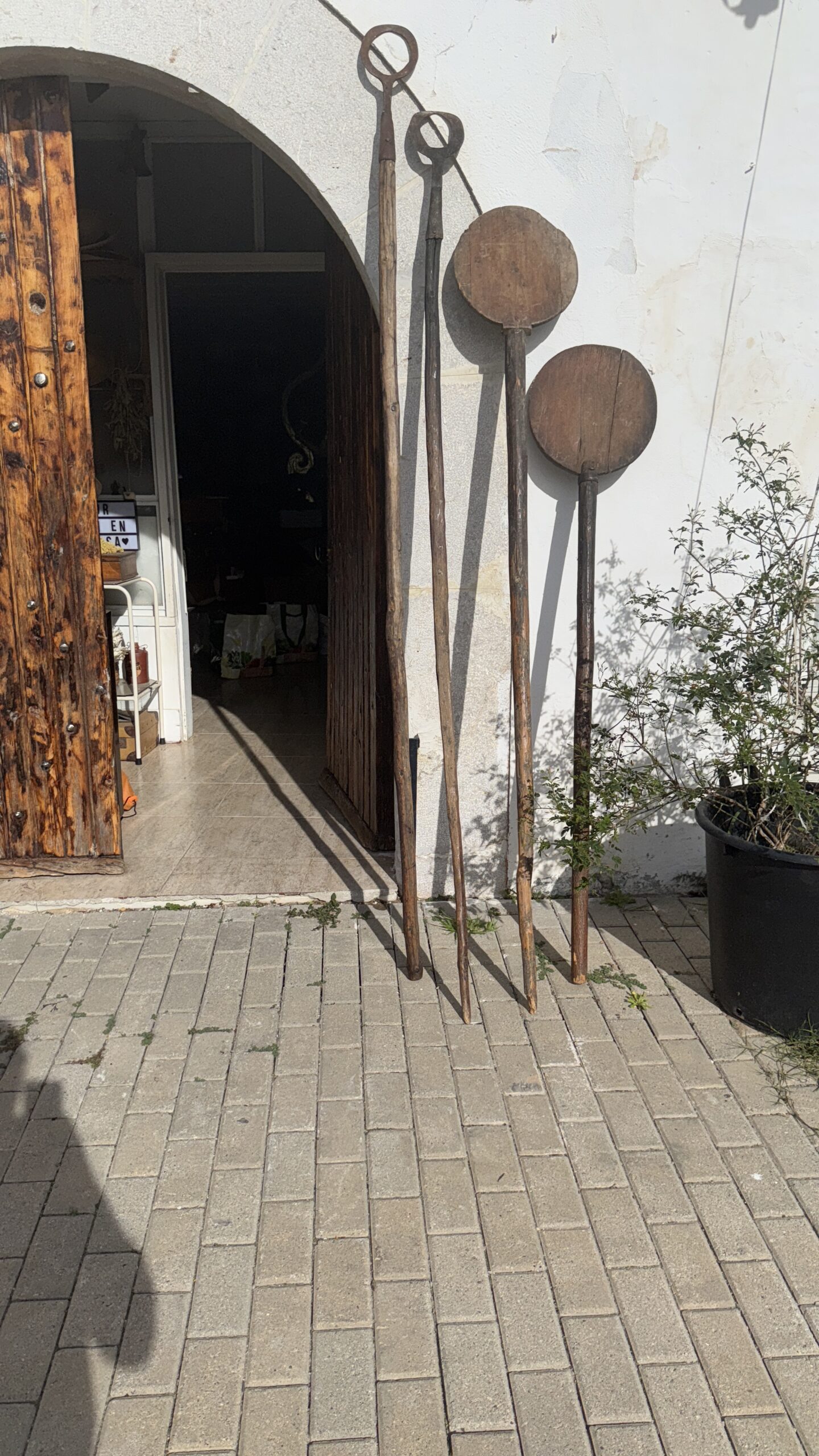 Es fantástico poder ir de mercadillos con Vanessa, le gusta encontrar sus propios tesoros, es una sensación fantástica cuando encuentras cosas nuevas a 1€ o cosas antiguas muy económicas, siempre que compro algo, es por que me transmiten buena energía, la historia que contienen, la historia que te cuentan de cada objeto, me fascina aprender aunque sea un poquito, estas varas son herramientas de panadero, pueden tener más de 100 años y que sean d madera y metal hace que sea un sencillo espectáculo, la madera aunque tocada por los bichitos, se mantiene entera, el metal con algo de óxido y el desgaste del uso, un oficio duro, para pocos afortunados, que hacen felices a miles. En mis días de tatuador más activo la sensación de hacer feliz a los demás, es lo que siempre me ha dado energía para seguir adelante, pasé épocas duras psicológicamente hablando, pero el crear sin parar, el hecho de investigar para mejorar cada día, siempre me ha llenado y me llena de alegría. Y esto de pasear con Vane buscando tesoros es un buena buena aspirina.