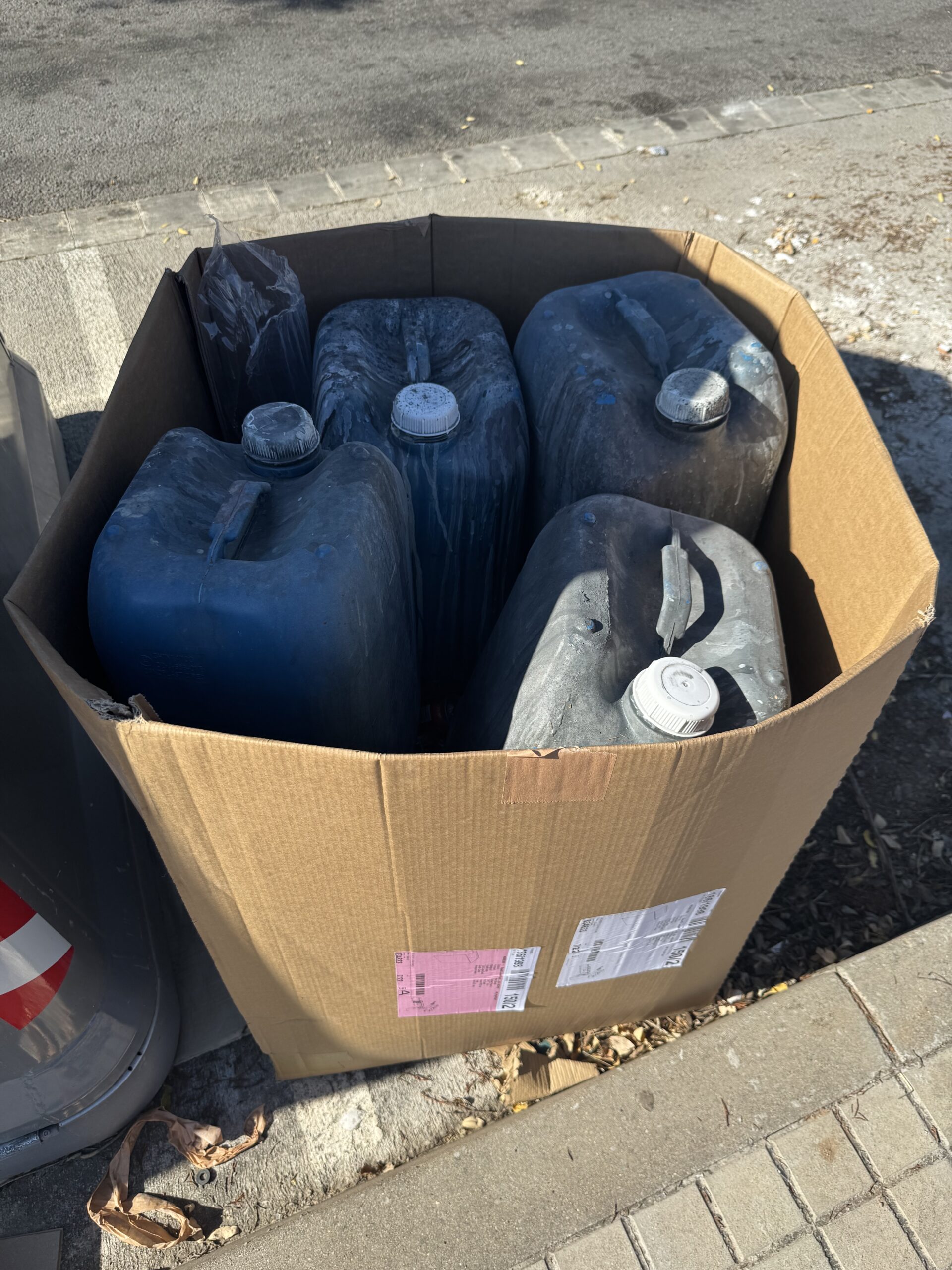 Hoy mientras arreglaba mi furgoneta, la estoy preparando, no sé si para venderla o para quedármela, es un dilema, bueno la cosa es que ha pasado mi vecino y hemos estado hablando de varias cosas, y al cabo de un momento, vemos a este “personaje” tirando bidones industriales en los contenedores de los vecinos, eso hay que tirarlo en un lugar explícito para no contaminar o poder reciclar, no le importaba nada, le pude grabar y fotografiar tranquilamente, parecía ausente o era totalmente normal para el, ser así de inconsciente, quise llamar a la policía para denunciarlo, por que está completamente prohibido hacer eso, me controle hi decidí mandar mensaje a la empresa, del rótulo de la furgoneta, si mañana no me responden lo publicaré en TikTok y si no me responden en dos días lo enviaré al diario, de aquí, y si no me responden, lo mandare a la policía. A ver si así despiertan.