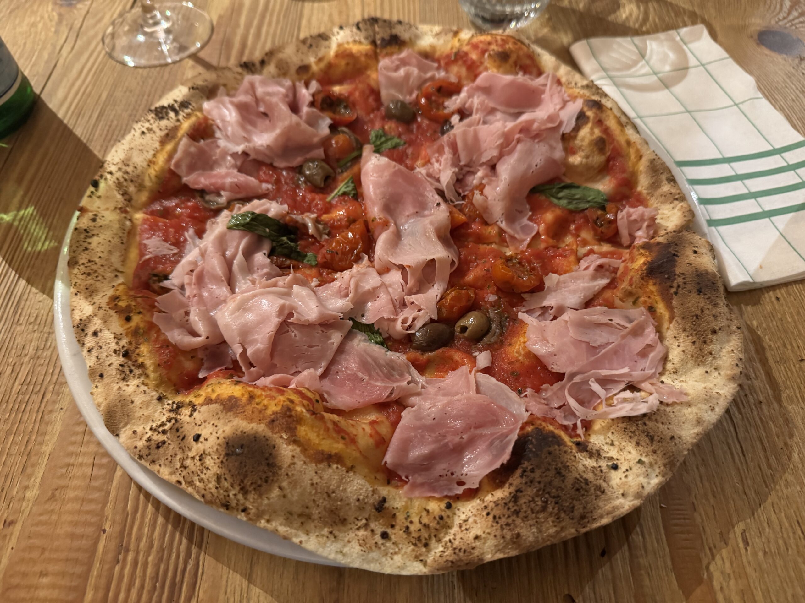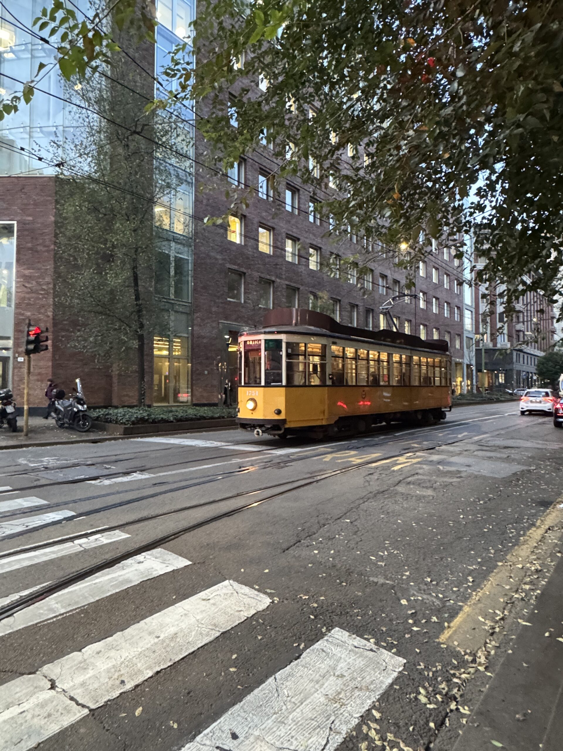 Estamos alojados en un estupendo hotel cerca de la estación de tren de milano céntrale, una zona de la ciudad muy de oficinas y restaurantes, bastante sosa para un viernes tarde, luego fuimos a otra zona que es más nocturna y había mucha gente en las terrazas bebiendo y comiendo . Hicimos un aperitivo al hacer el brindis, me resbaló el vaso y casi bañó a mi suegro. Susto risas y a cenar a otro local, pizza, más risas amaretos varios y guiños de lo fuerte q era el licor y más risas , caminamos de vuelta al hotel empieza a ser fresca la noche , me duele la tripa, quiero llegar ya, y descansar, ha sido un día largo.