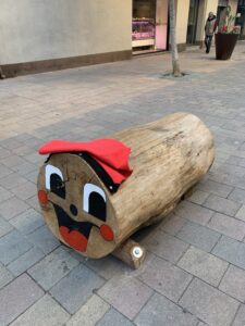 Este es un caga tió que mi pueblo pone como decoración, los que hay en las casas son más pequeños. Es toda una tradición!!