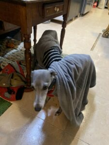 los perros estaban ya cansados y no encuentran la postura en su cama. Nos hemos reído mucho.