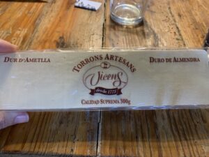 y hemos terminado la noche comiendo turrones. Típico de España en Navidad. Son dulces de sabores diferentes que vienen en tabletas. Están とてもおいしい