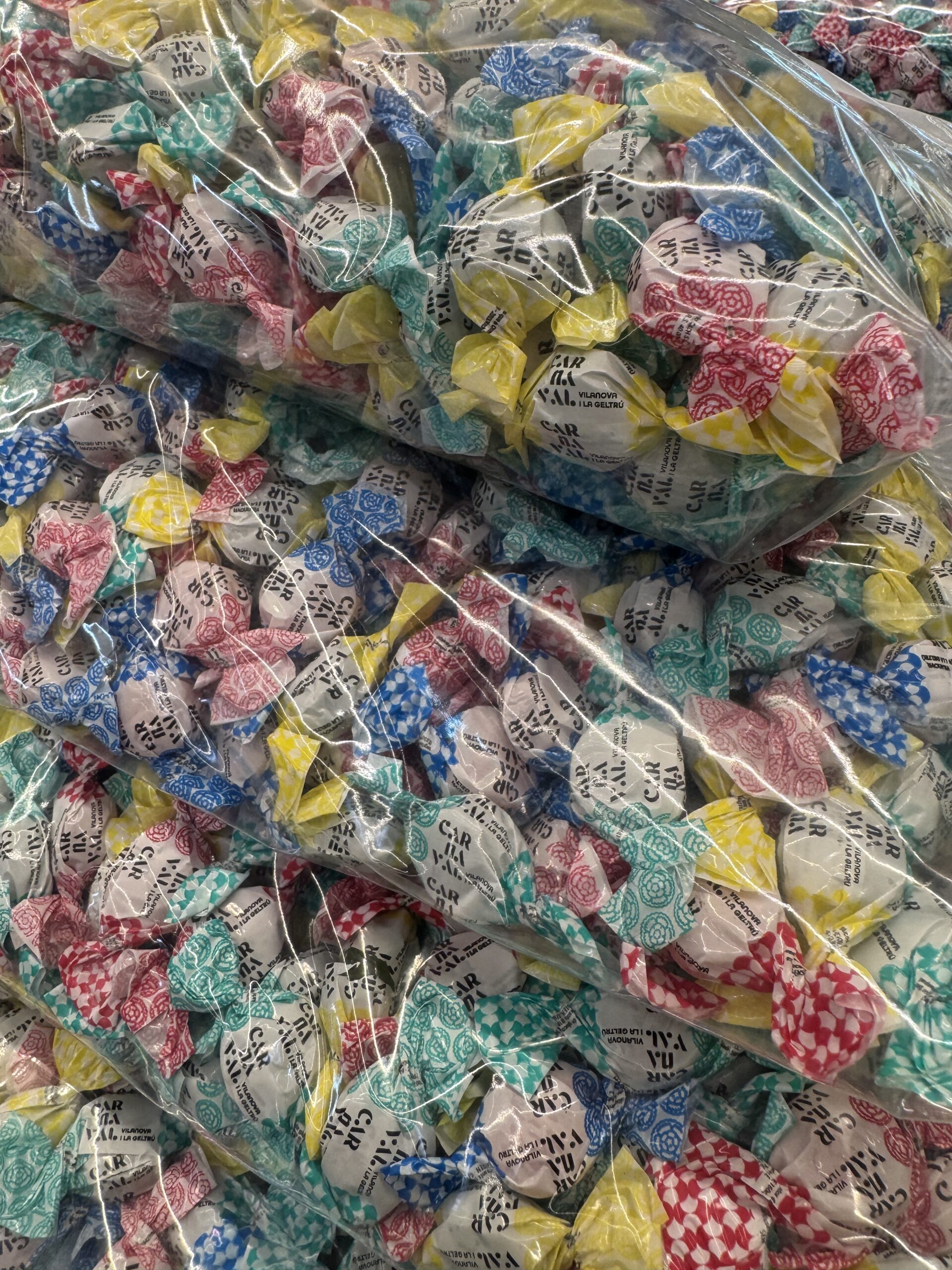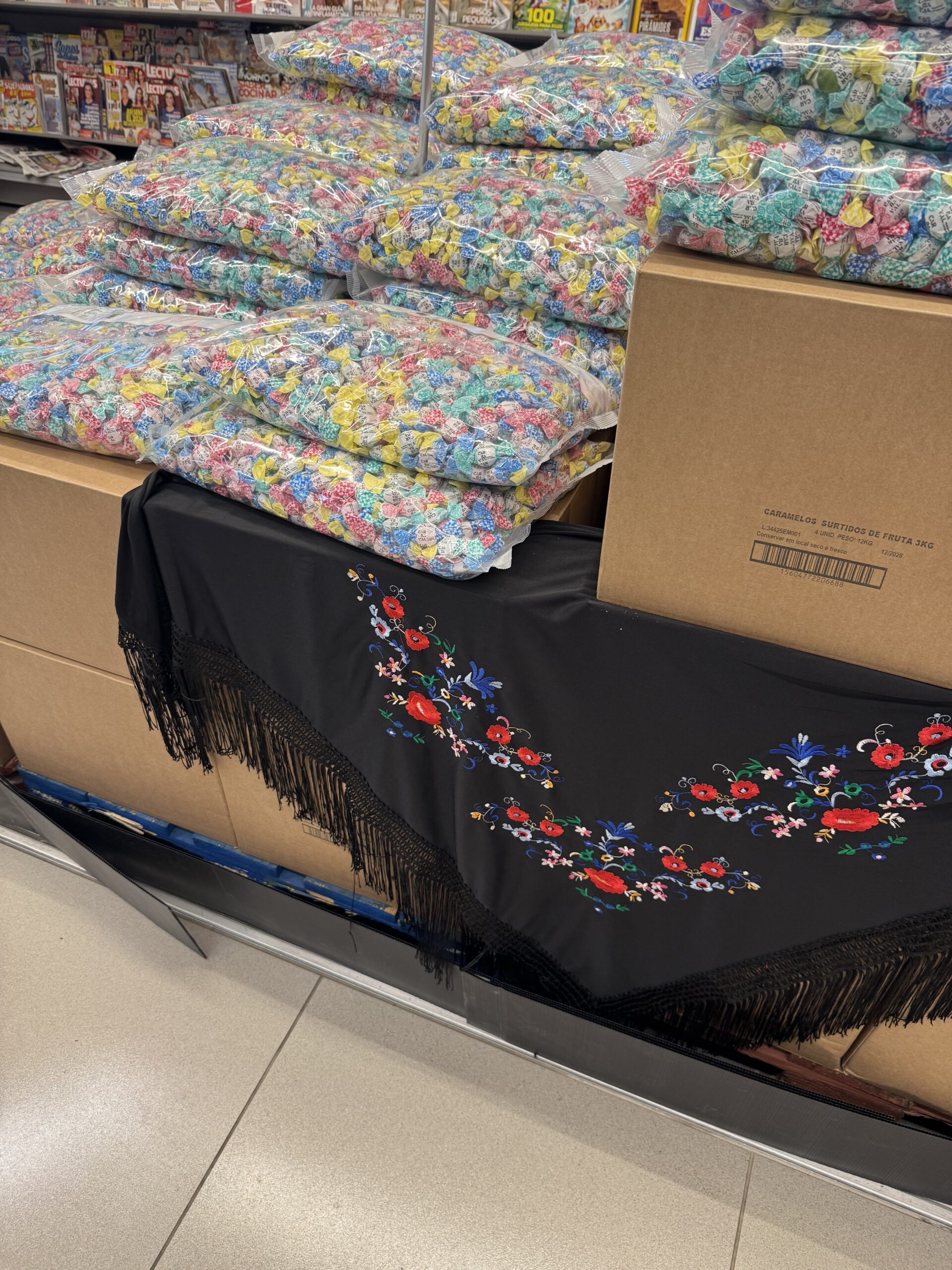 Esta tarde fuimos a comprar al súper, y al entrar encontramos que ya empezaban a vender las bolsas de caramelos para las comparsas, fiesta que hacen aquí al lado en Vilanova desde hace muchísimos años, es bonito ver la fraternidad de la gente, grupos de personas que bailan en pareja, las chicas con mantón de Manila y los chicos con chaleco y barretina, creo es la fiesta más importante del pueblo, toneladas de caramelos llueven al son de los tambores, la gente baila y lanza caramelos durante todo el día y parte de la noche, es impresionante ver el manto de azúcar en el suelo, que dura varios días, día perfecto para los zapatos que quieres tirar, por qué quedan tan mal que no hay quien los pueda limpiar, a tal punto que si en esos días llueve la gente lo agradece y mucho, recuerdo un año que al pasar con la moto, durante muchos días cuando el motor se calentaba, la moto olía a caramelo caliente. Es una fiesta que se hace en los días de carnaval.