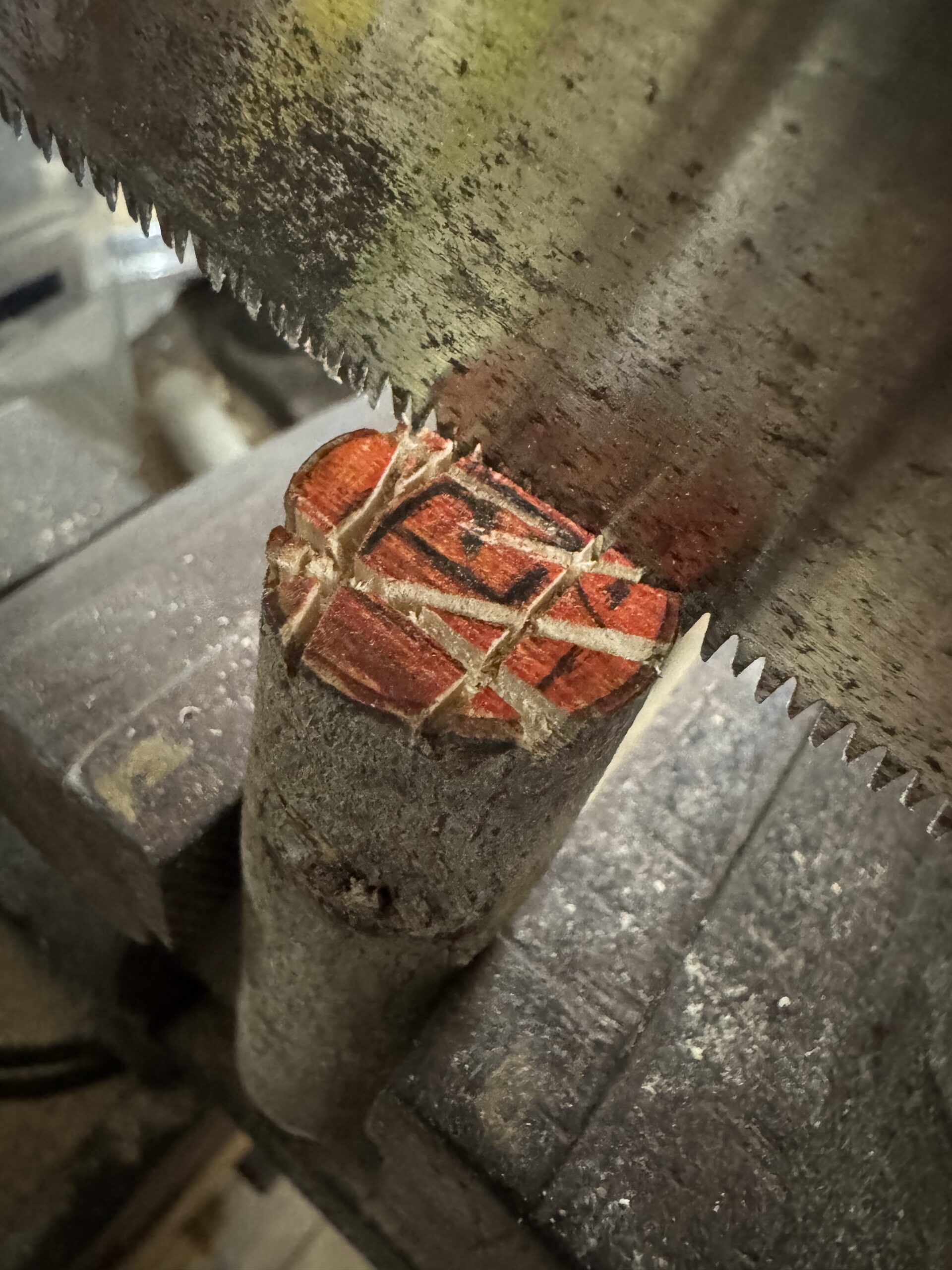 Después cojo un trozo de madera de laurel que tenía por casa, lo corté en varios pedazos y como llevaba tiempo con ganas de hacer mi propio hanko.