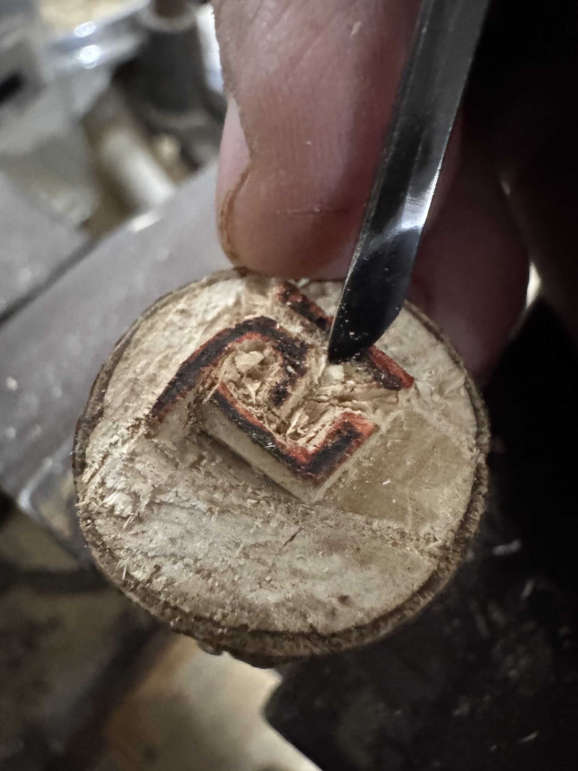 Hace un tiempo vi una técnica de cómo se hacía un Hanko sencillo y hoy la puse en práctica, la verdad es que la mitad me la he inventado, pero parece funcionar, así que seguí adelante creo tendré que endurecer y proteger la madera de alguna manera y acabar de pulir bien para darle un mejor acabado, pero por hoy está bien. Tiene buena pinta.