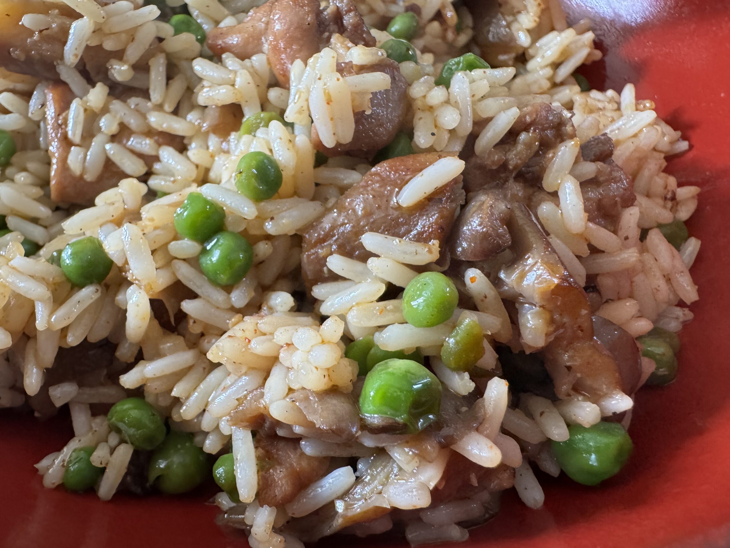Me cocine un poco de arroz con pollo, setas y guisantes , quedó riquísimo.