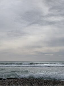 De regreso a casa y antes de llegar fuimos a sitges a ver las olas. Aunque se vean pequeñas en la foto eran grandes y había varios surfistas cogiendo olas.