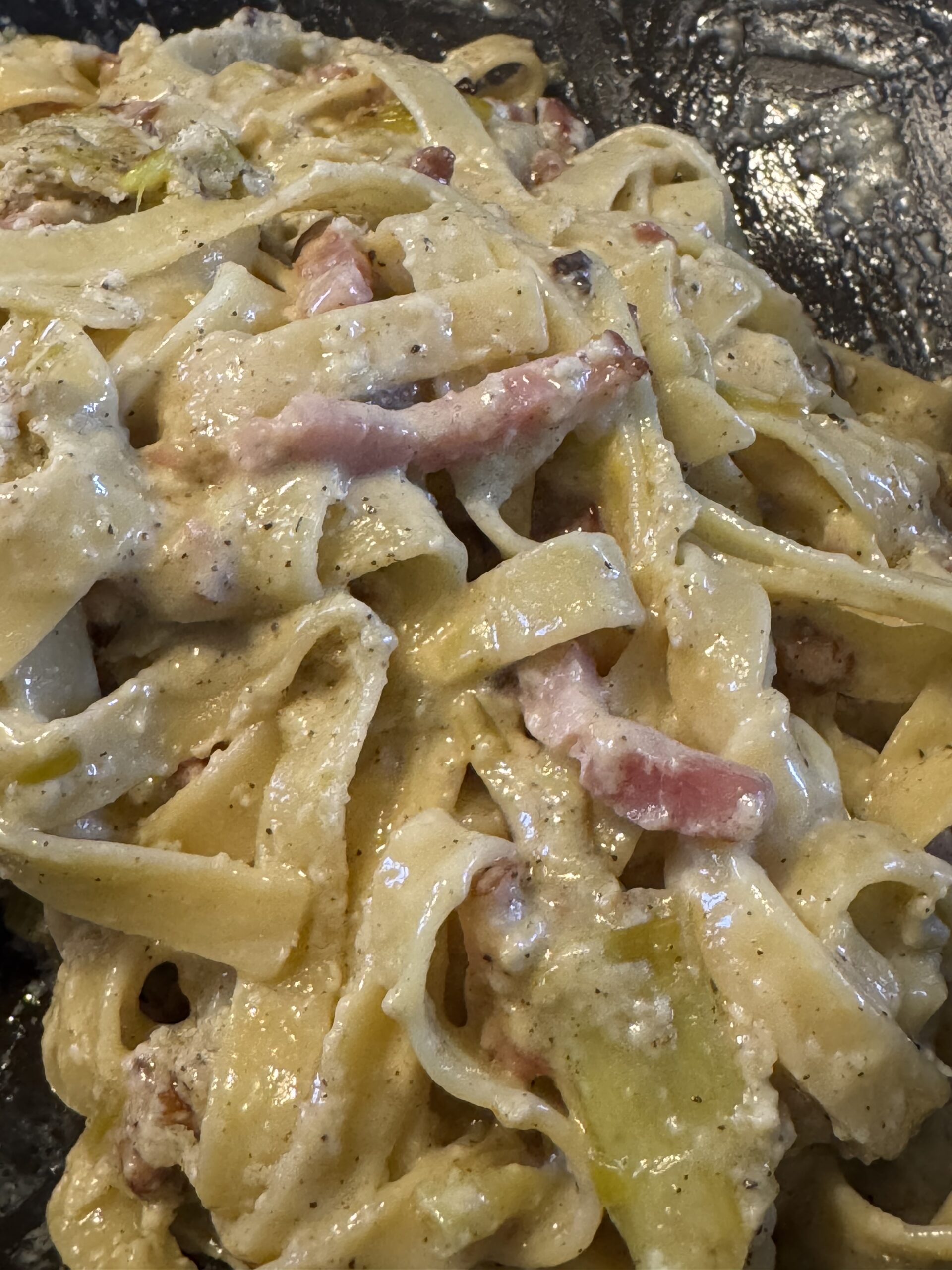 Hoy aprovechando el día de lluvia y que fui al súper compré alguno de los ingredientes para hacer la carbonara, a mi manera, es un muy diferente a cualquier, otra receta que conozca la gente, la inventé hace años por qué me gusta el ajo y no puedo con los lácteos, así que hice un experimento y me salió bien, es cremosa y no lleva crema, todos los ingredientes tienen que tener su punto perfecto de cocción o ejecución, ya que sino sería demasiado pesada, en cambio a modo mío queda justo en su punto.