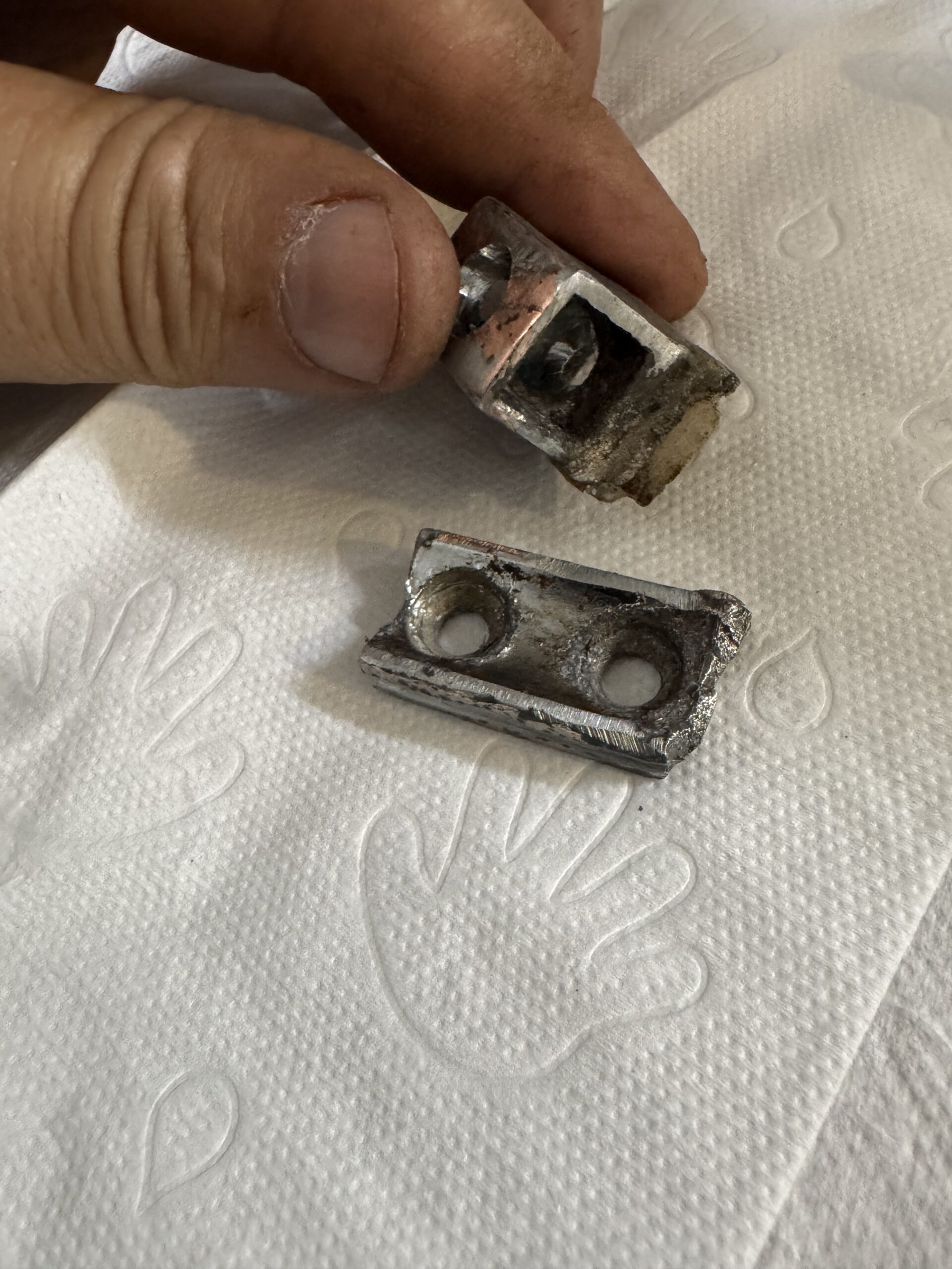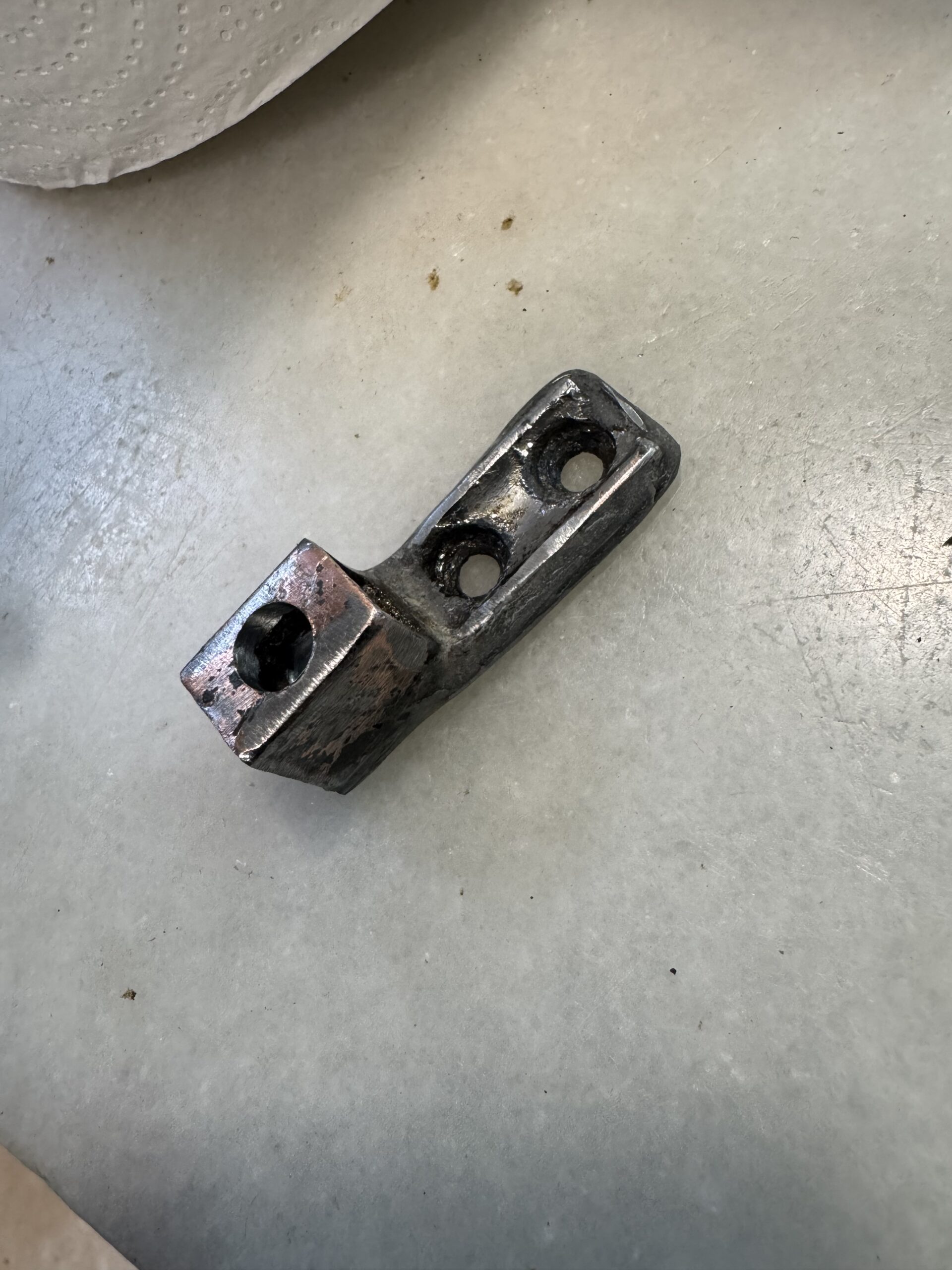 Recorté los laterales de la bisagra y le hice, un agujero extra, para un tornilllo extra y alambre, luego superglue y bicarbonato, esa mezcla es sumamente dura, la estructura, ahora es todo terreno.