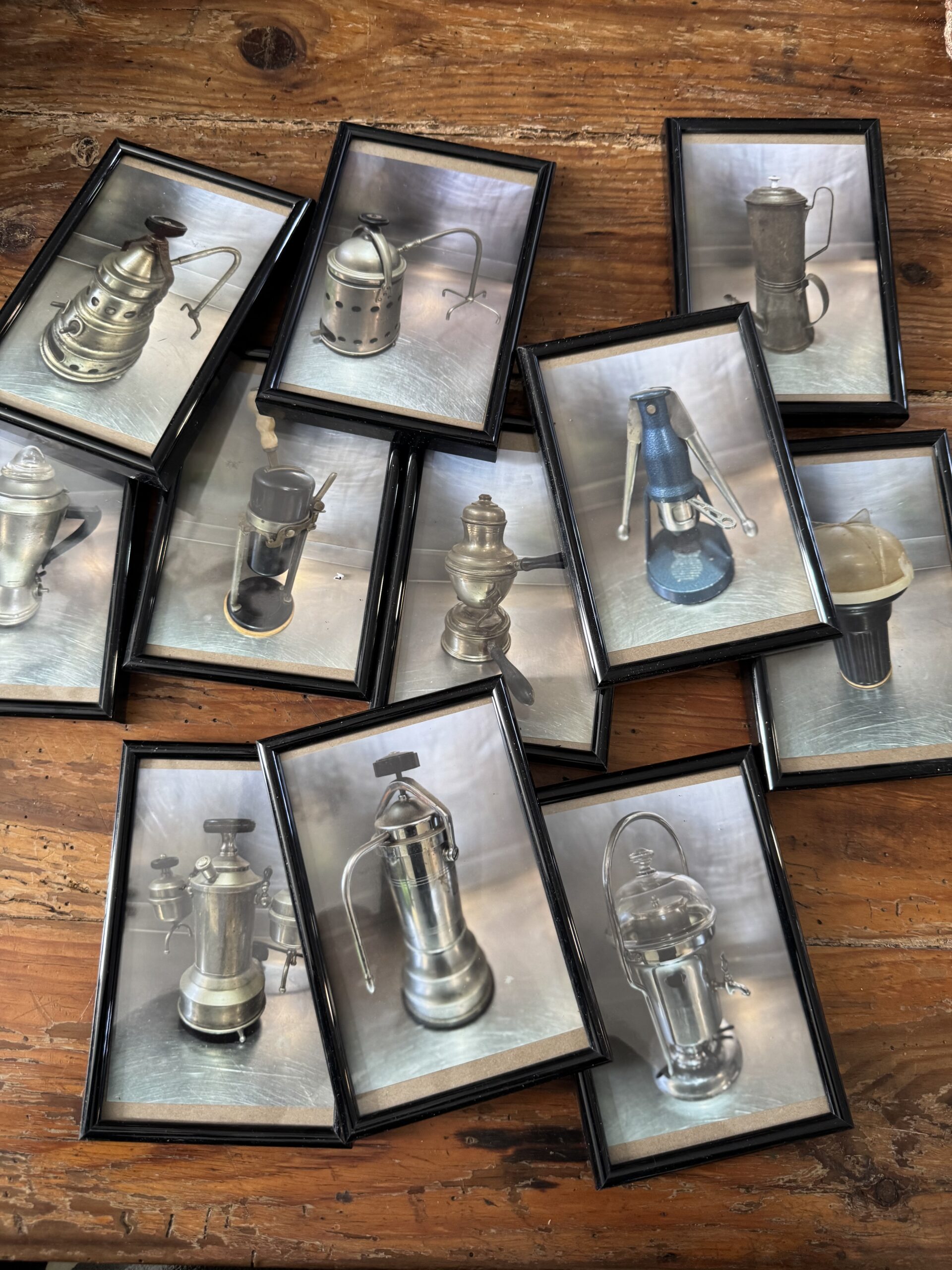Hoy seguí un poquito con el rinconcito cafetería, por fin llegaron las fotos y las estube enmarcando, entretenido estube un rato, me gusta como quedaron las fotos. y aunque tengo las cafeteras físicamente, las pondré enmarcadas.