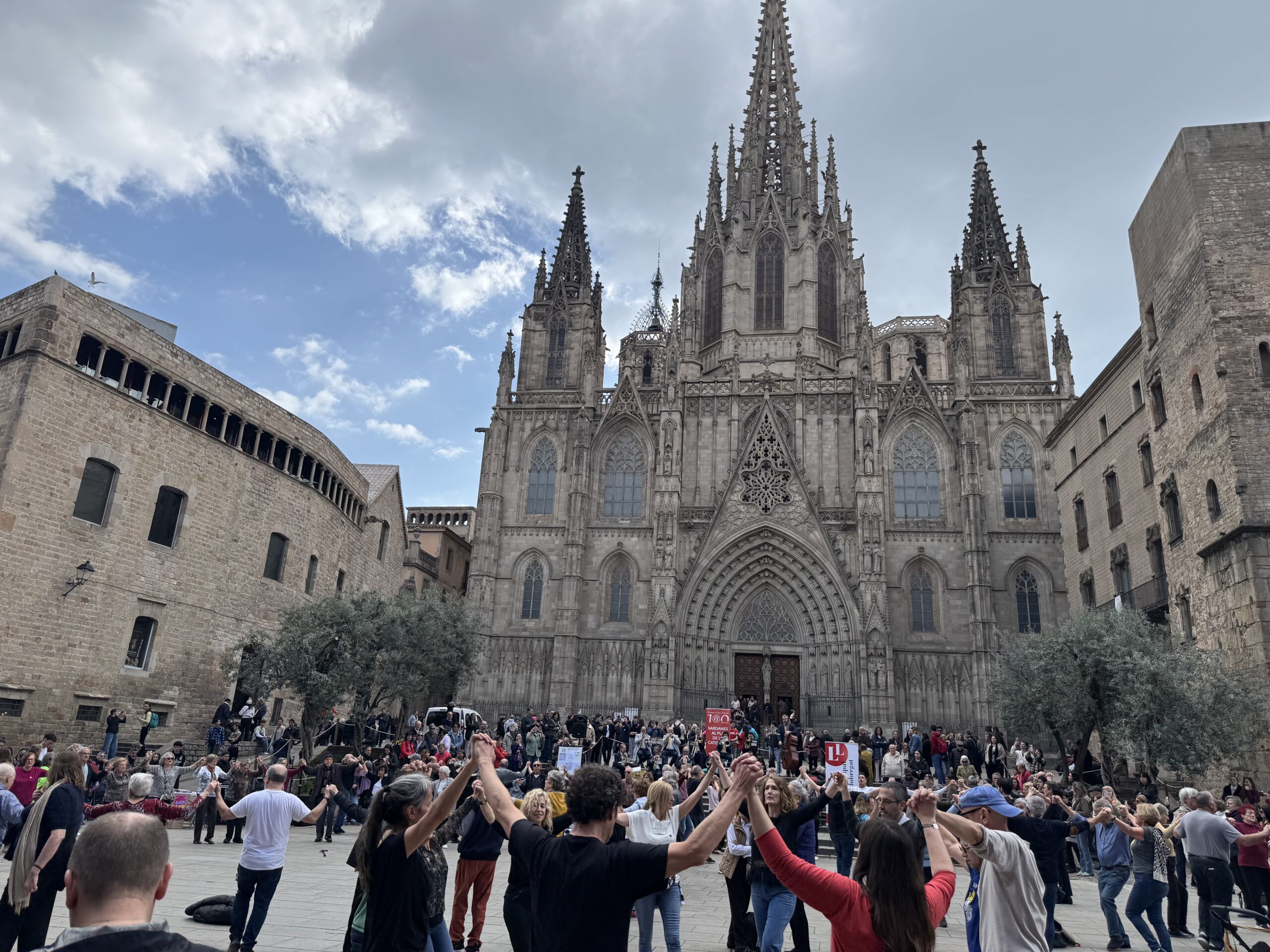 Ayer Domingo quedamos con Ethan y Carol, Daisuke y Laura, paseamos por la catedral, vimos bailar sardanas a ritmo de habaneras, música típica de la costa catalana. Es lago muy sencillo, compartido y dinámico, cuando lo vi aquí en la catedral la primera vez me vino en mente, organizar un proyecto musical, que llamaría A.M.P.S y D.F (ya os contaré más adelante) . Es algo que me gustaría hacer, también en Japon.