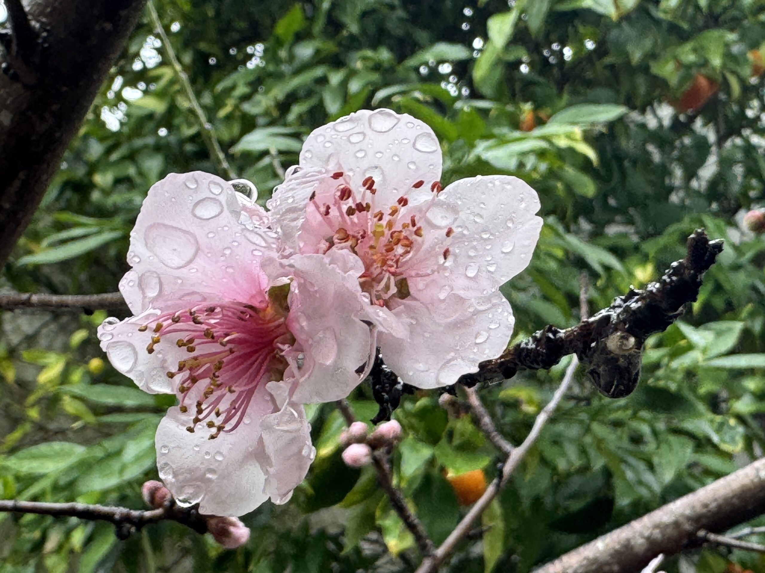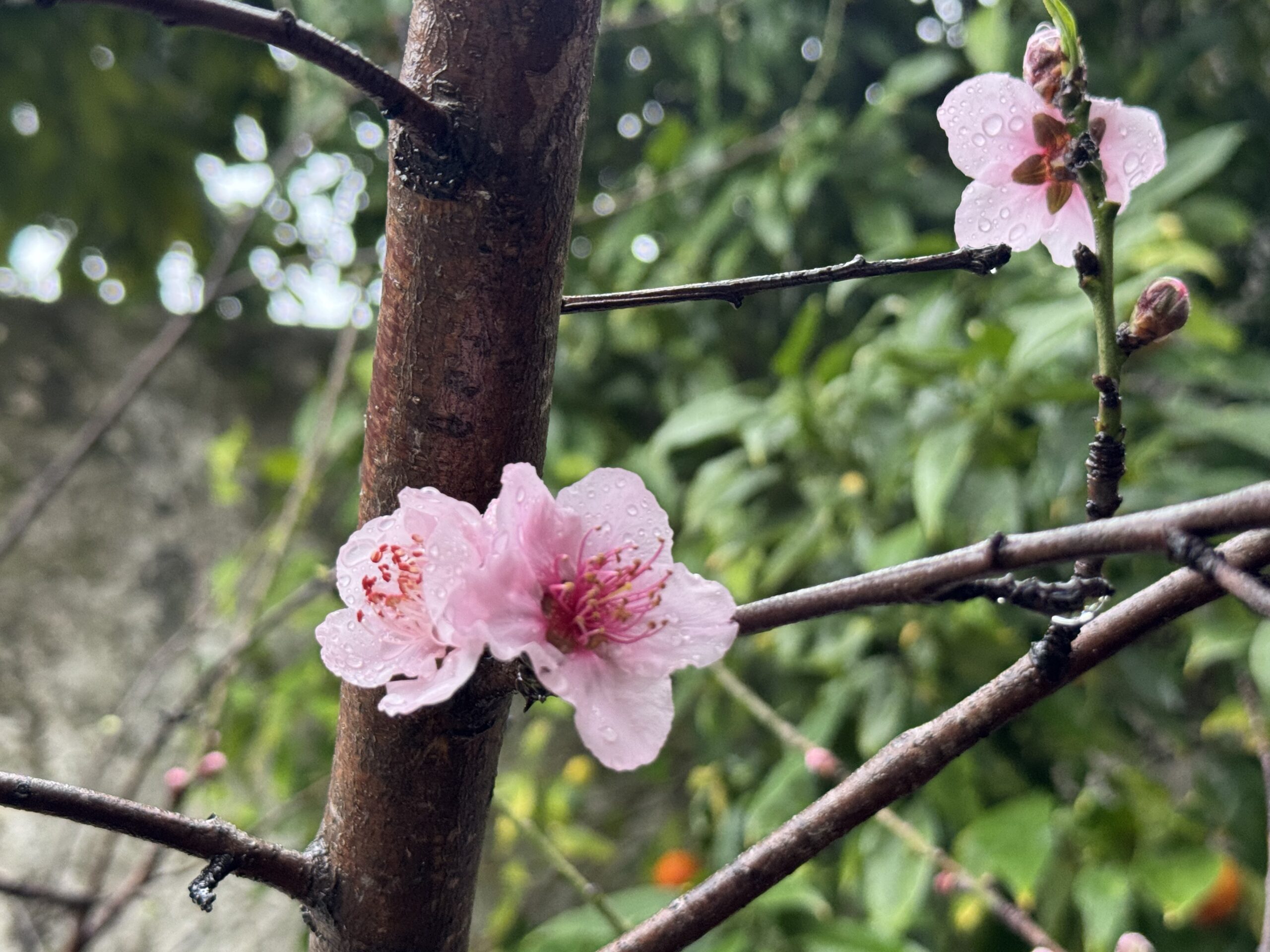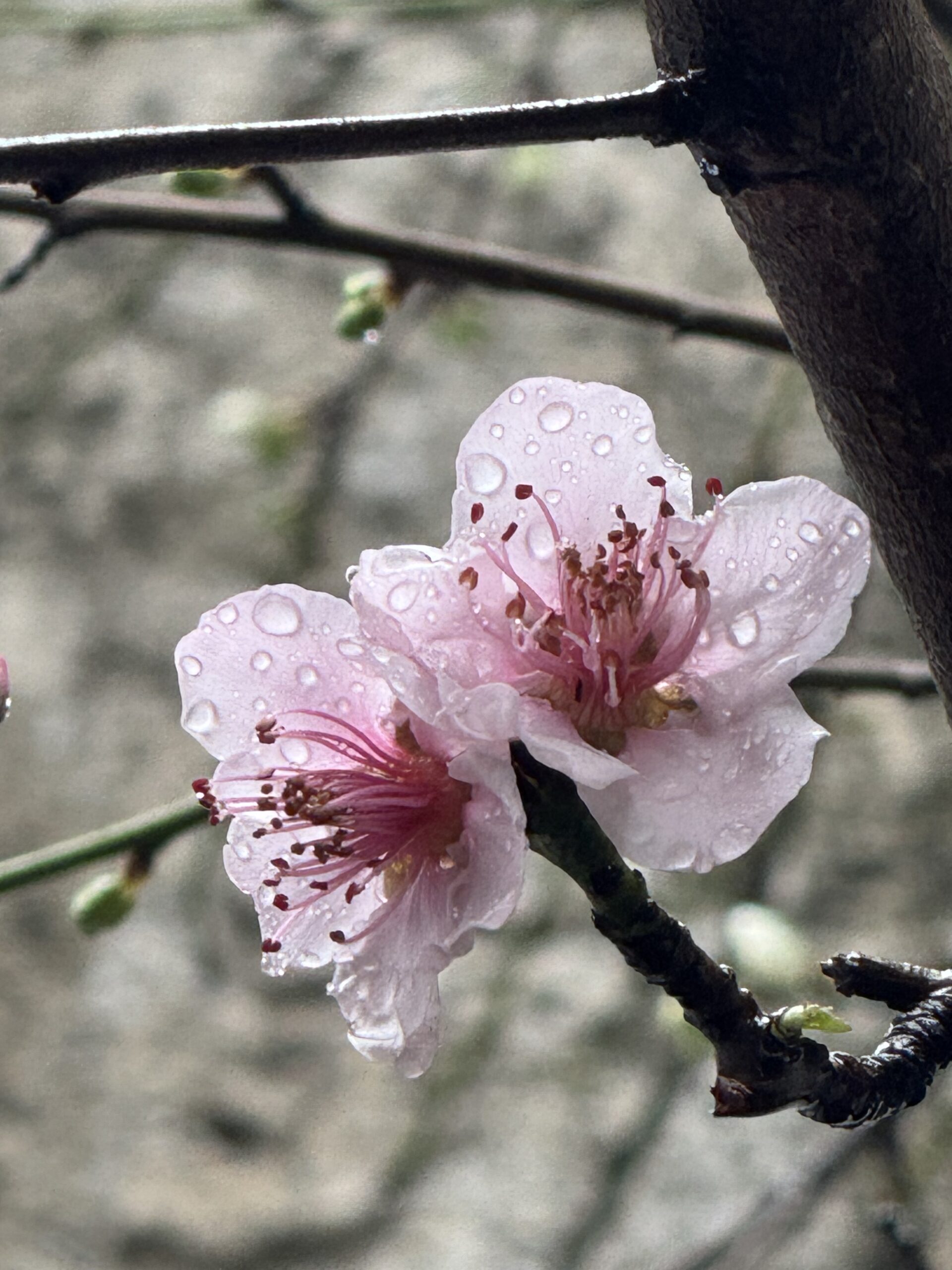 Hoy pude disfrutar de otro de nuestros melocotóneros, está todo florecido y aunque estuviese lloviendo, quería compartir tal belleza.