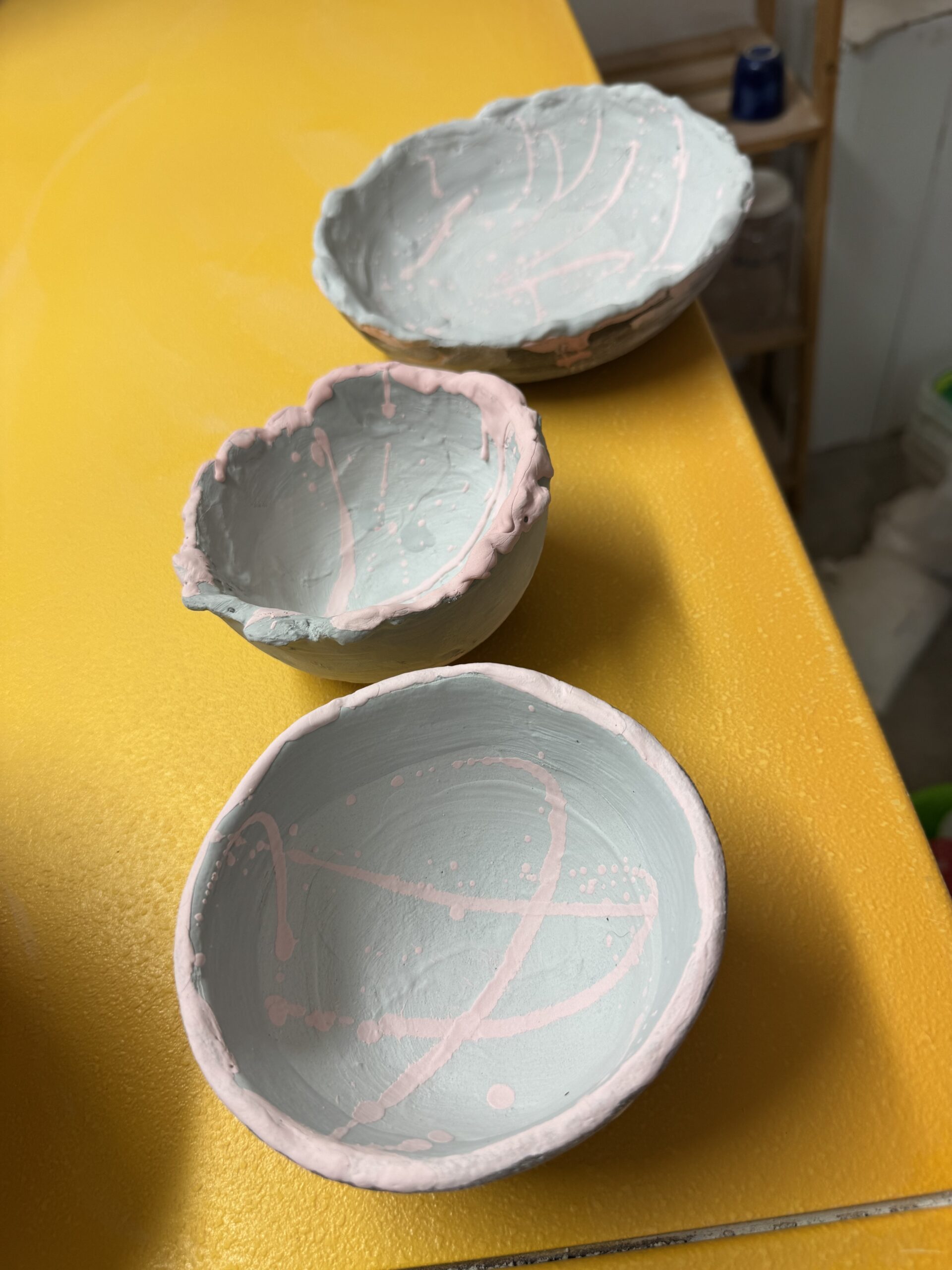 Hoy como todos los jueves, tuve sesión de cerámica, pude recojer alguna pieza y esmaltar de nuevas y como me sobró tiempo pude hacer unas piezas nuevas, me gusta la mezcla de esmaltes.