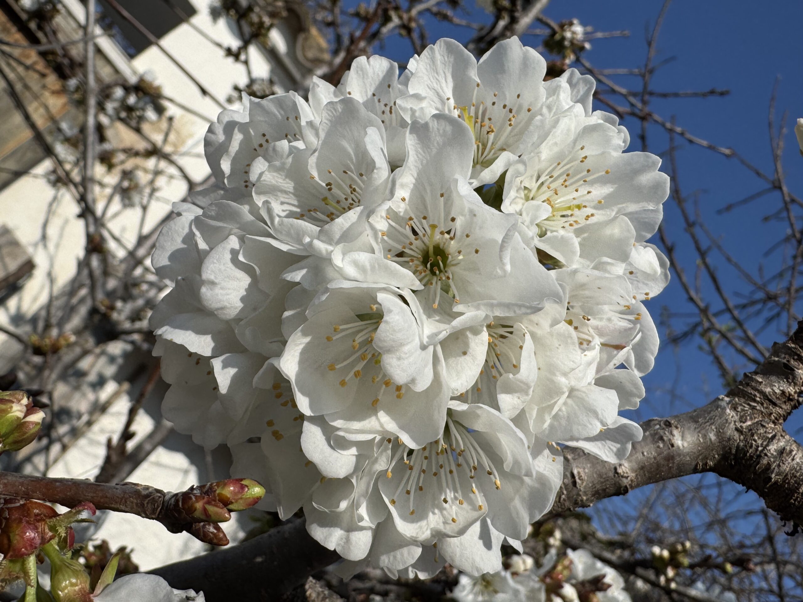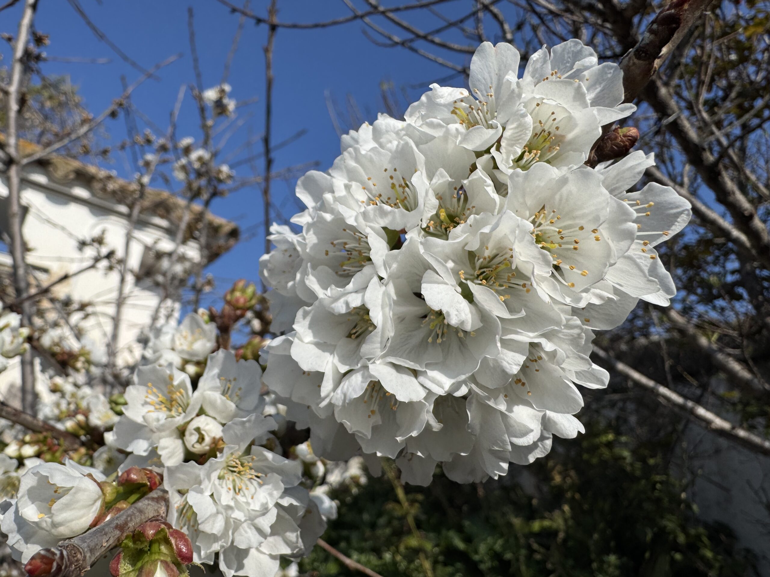 Limpiar de bichos algunas plantas, arreglar otras, cambiarles la tierra o añadírsela, podar. fotografiar los brotes de la parra o “mariposas” y las flores de sakuranbo, aunque sean muy diferentes a las de sakura en Japón la alegría para mi es enorme.
