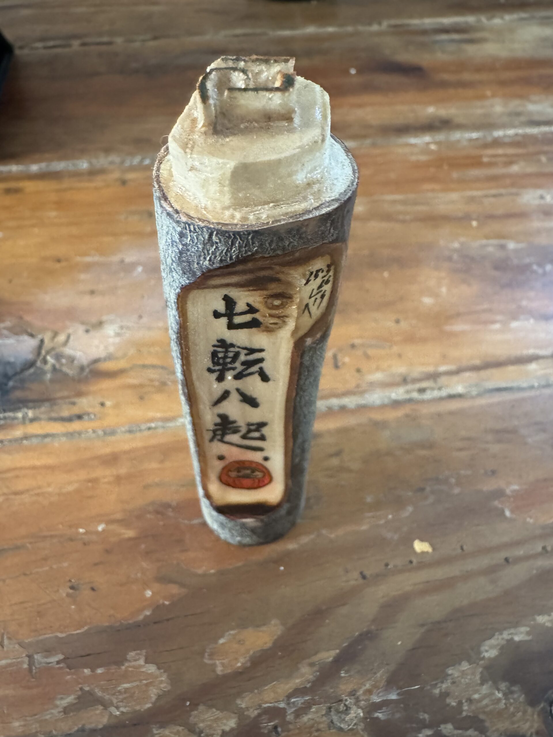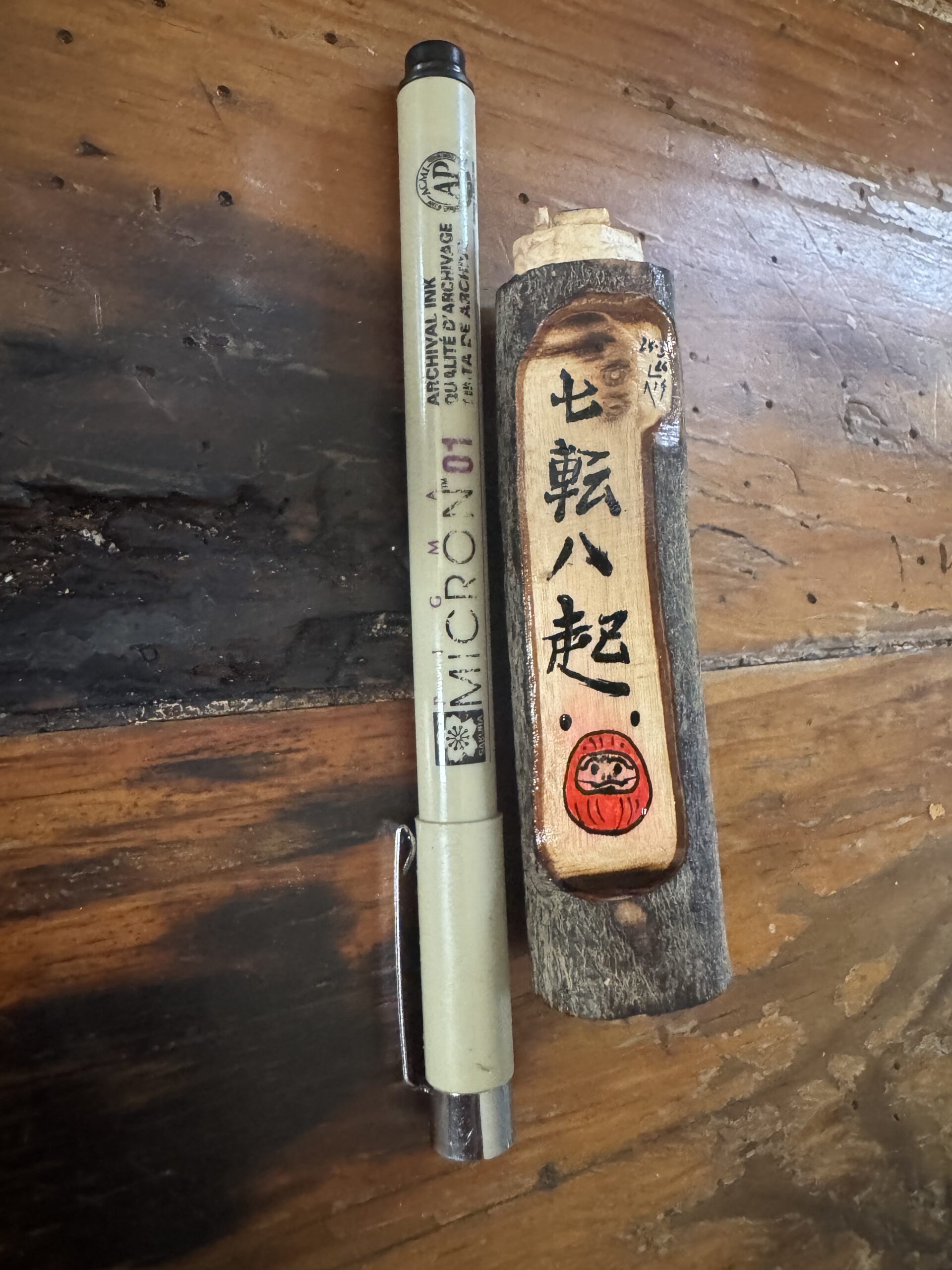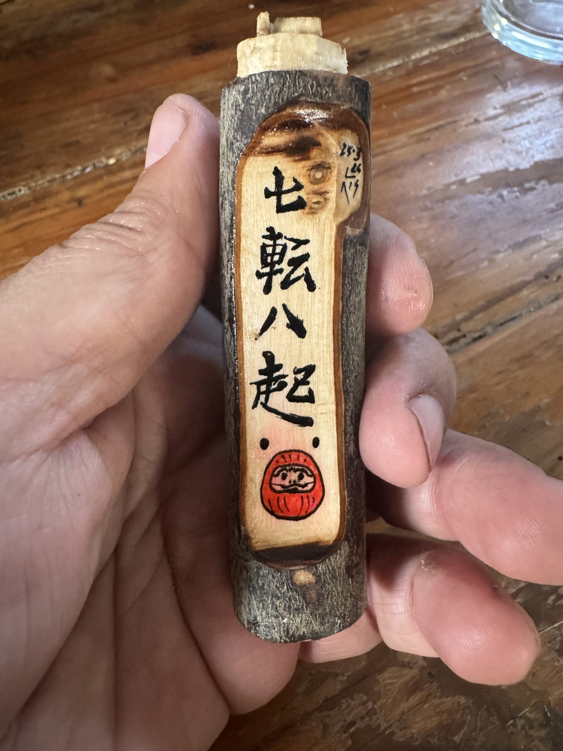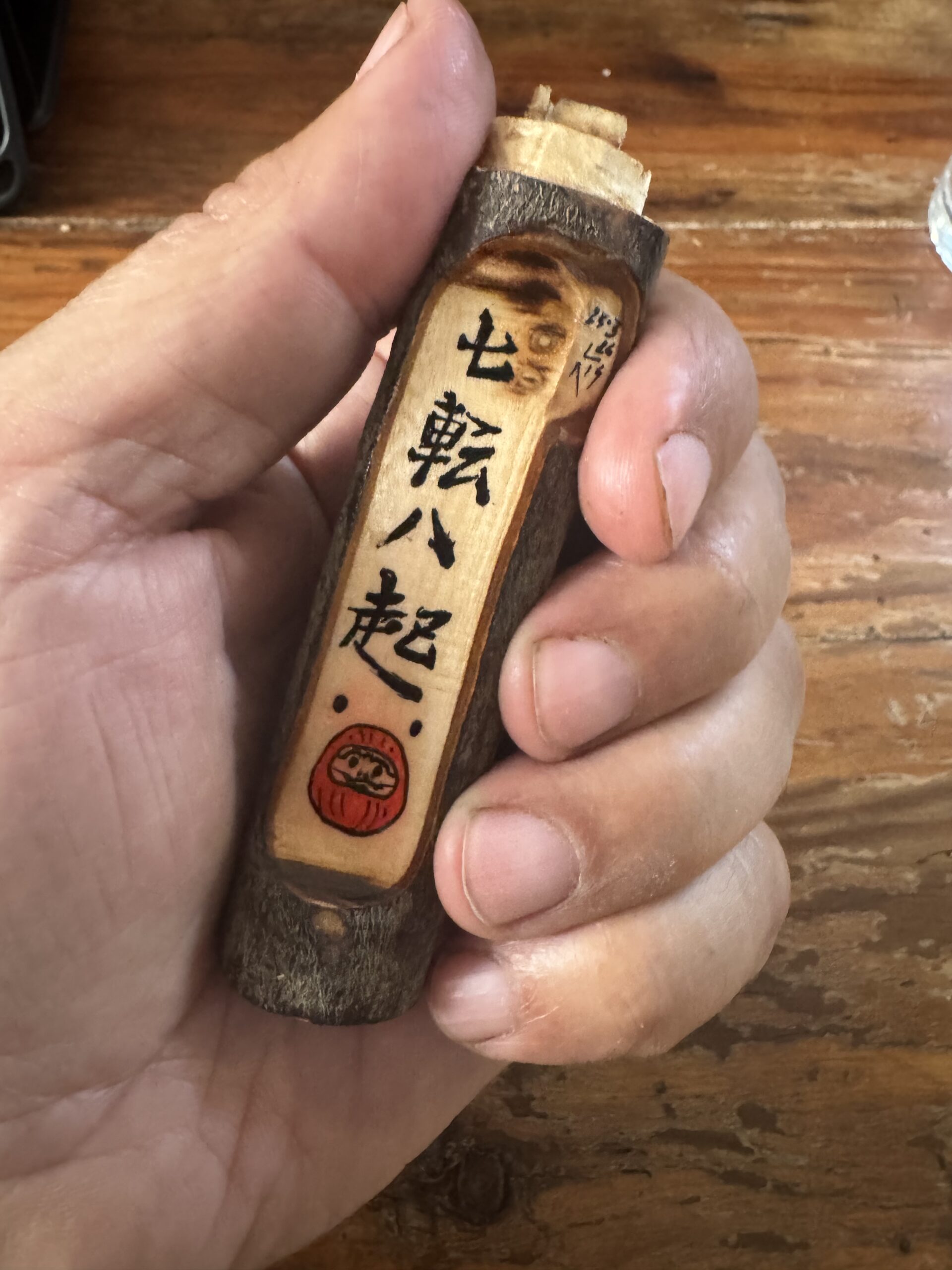 Y después de estar un poco demasiado en instagram, quise probar una sierra que compré hace unos días y retome el sello que tenía aparcado, me vinieron un par de ideas a medida que lo retocaba, empeze queriéndole dar forma, un tanto provocadora al mango, tipo “shunga” pero, creí que un mensaje de superación es mejor que unas risas de un ratito. Además con la forma que tiene se queda en pie. Y es más bonito. Pensé hacerle una cajita pero creo que la compraré así ya esta acabado, no quiero imaginarme cuánto tardaría en hacer una cajita, mi paciencia es limitada o selectiva.