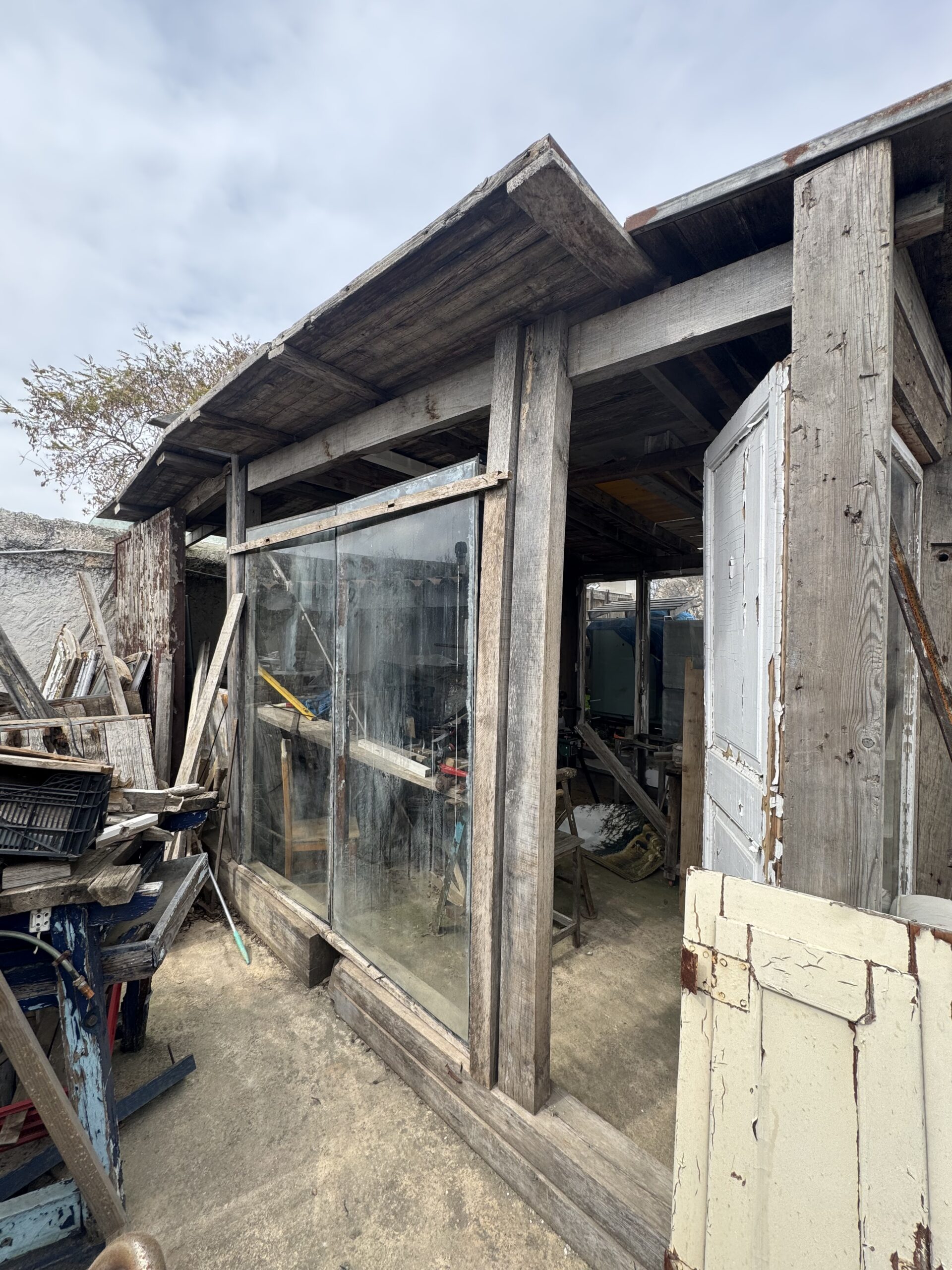 Los cristales que estoy usando, los encontré en el contenedor en frente a casa, creo son de unas placas solares desmontadas. Pero para mí son paredes, debo encontrar la manera para eliminar la cal y el desgaste por el sol, para que queden más limpios, Reciclar es fantástico. Cambiar una madera de sitio para hacer un divisor, entre vidrios me parecía buena idea, hasta que tuve que volver a encajar todas las medidas, que locura, pero se ve mejor, por lo menos para mis ojos. Mañana seguramente seguiré, ya que por poco que sea, lo que hago en el patio como es utilizando cosas que están por ahí, se va despejando y poniendo en orden poco a poco.