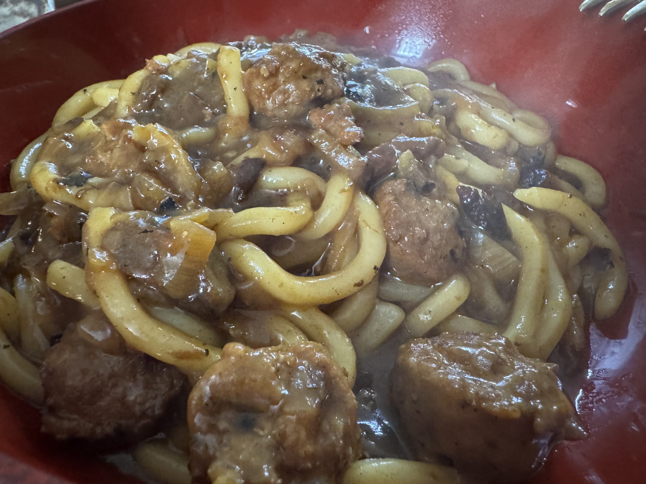 Ayer cocine un plato de cebolla caramelizada con ciruelas y salchicha, con lo que me sobró hoy hice, udon con curry, me quedó muy bueno, acabé de comer saqué la harley del garaje, le preparé un tupper a Vane y se lo llevé al trabajo. Así aproveché para dar un pequeña vuelta y la moto se mueve, hacía tiempo que no la tocaba.
