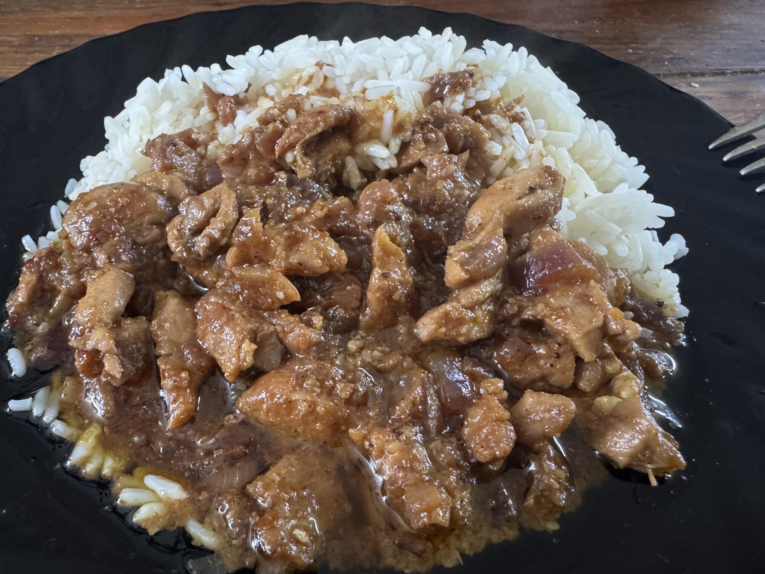 Al mediodía me sentí inspirado e hice un plato de aprovechamiento, a ver que había en la nevera, y me salió un receta requisima de pollo con salsa de sésamo y almendras. Un poco de arroz blanco y a disfrutar.