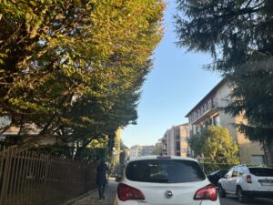 searching for parking under the azure sky