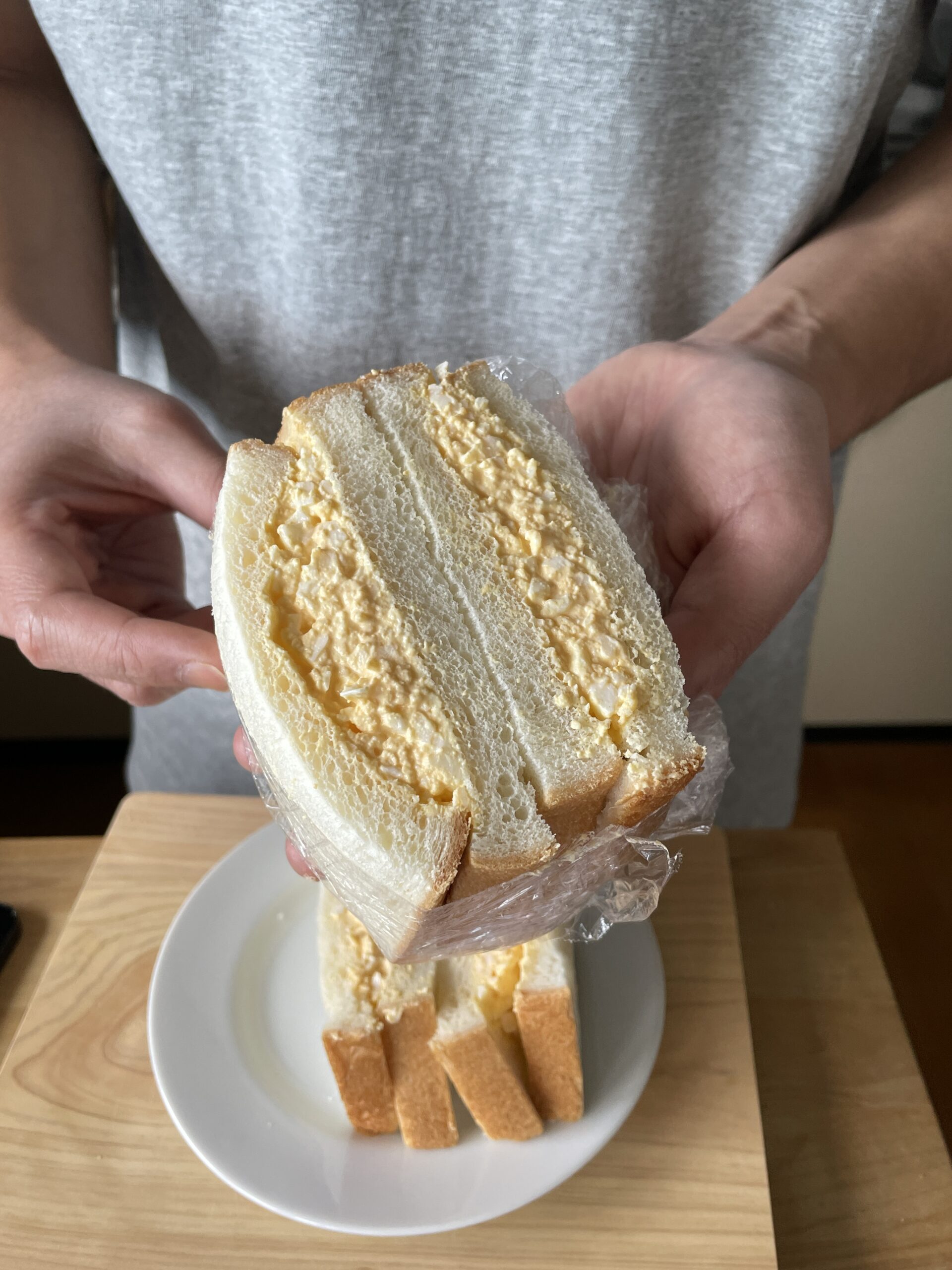 のんびりとした土曜日。お昼に起きたら迎がサンドウィッチをつくっていた。稲田俊輔さんのレシピ本は、写真がおおくてとっても見やすい。今日のメニューはたまごサンドときゅうりサンドという、どシンプルなもの。ポイントは具材をはさんですぐにカットするのではなく、重ねてラップでくるんだあと、5分以上おくことなんだな。たまごたっぷりで美味しかった!つぎは、逆クロックムッシュをつくってみたい。(つくってもらいたい笑)