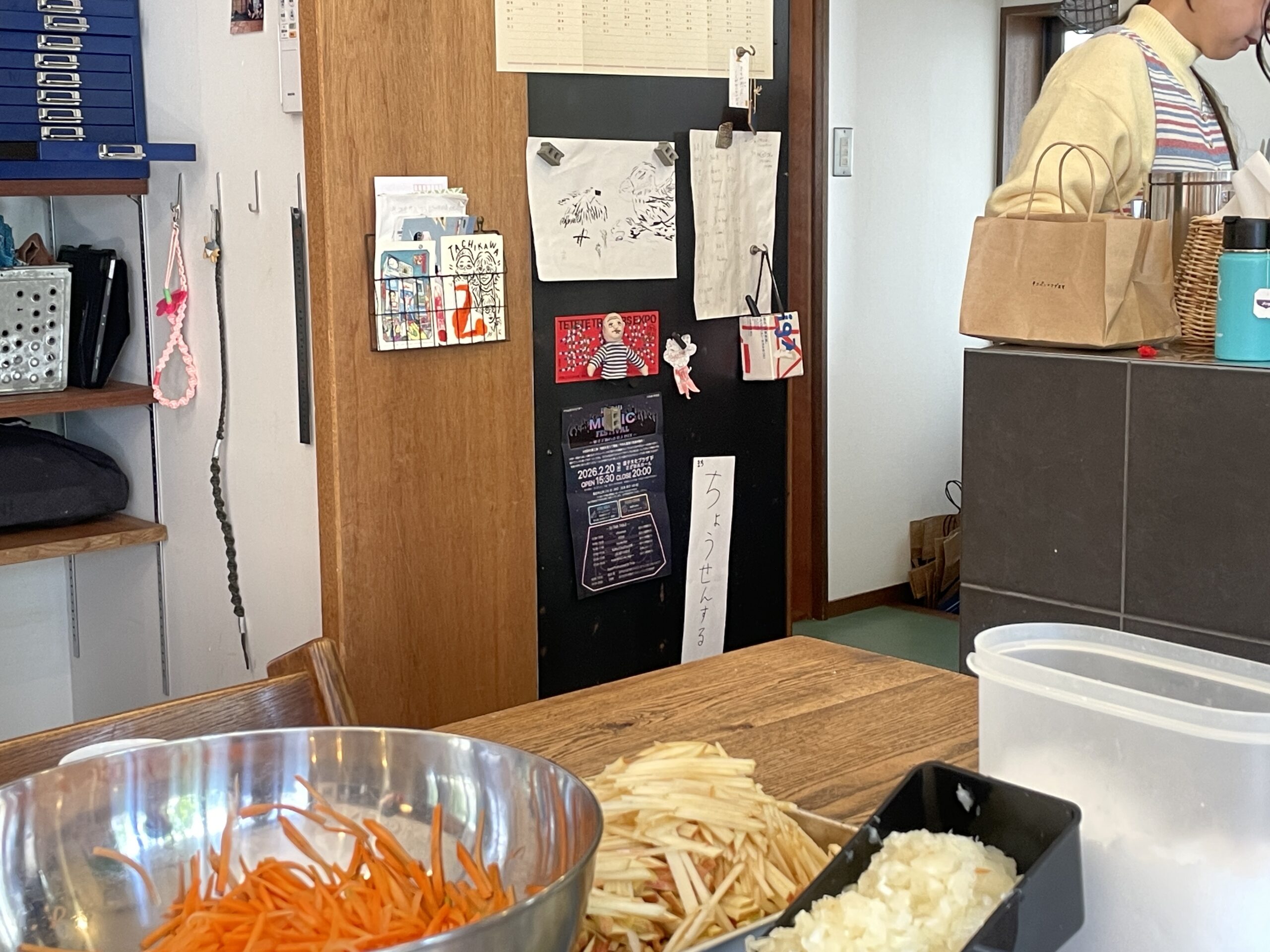 ついこの前の土曜日、さきさんのとこ(マルス)のキムチワークショップにいってきた。参加者はすべて女性。6~7人はいた気がする!40代の女性がこれだけ集まれば、みんなピーチクパーチクにぎやかだ。体のこと、家族のこと、最近みたドラマの話など、それぞれのからだから飛び出してきた雑談は、まるで生き物みたいに勢いよくひろがり続けた。キムチを仕込むあいだ、その後のお弁当の時間、そしてお茶の時間。絶えず喋りつづけているのだから、自分でもすごいと思う。ともに時間を過ごしながら、ああ、これが「連帯」ってやつなのか?と漠然と思う。