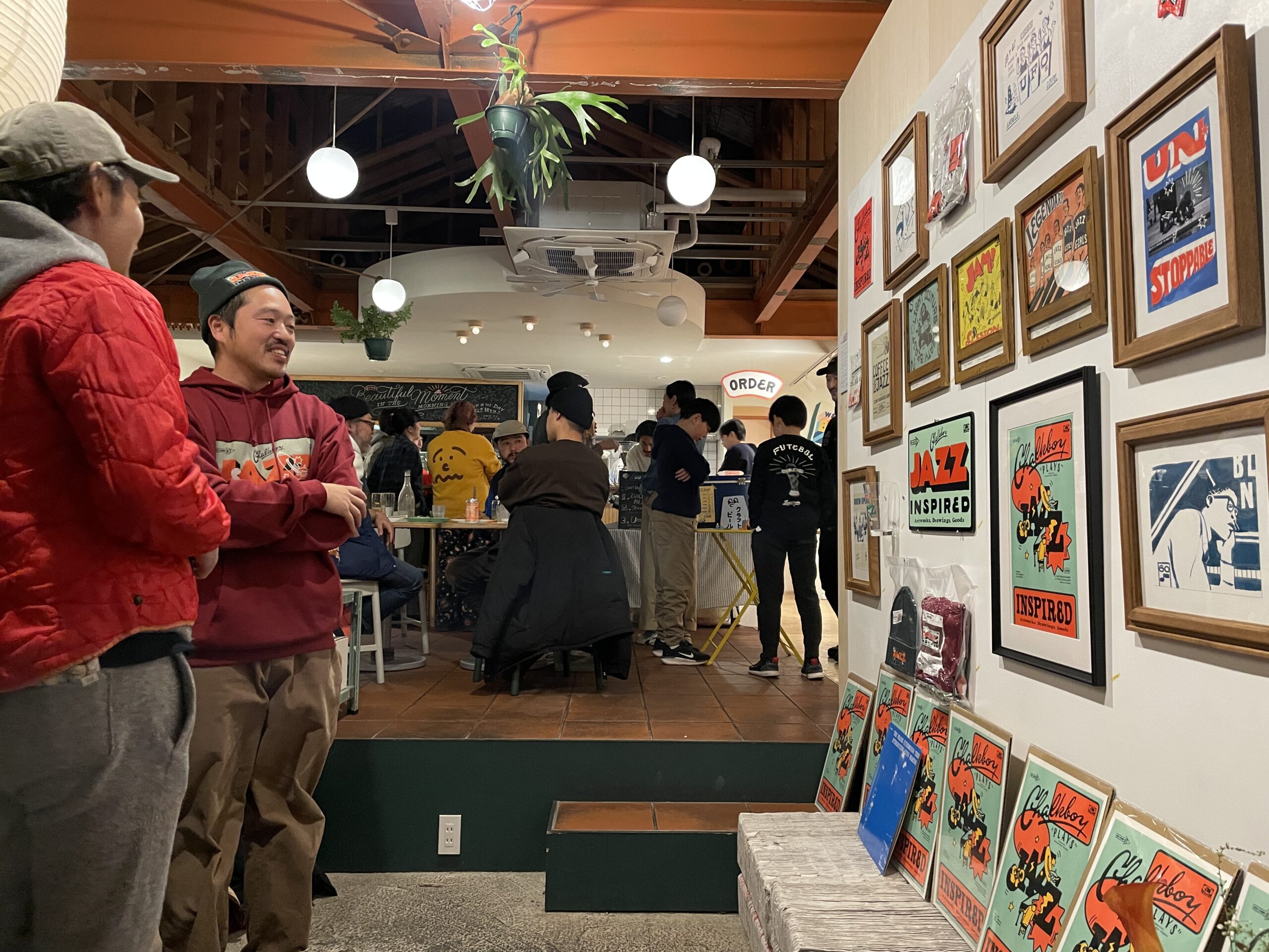 金曜日。仕事を終わらせて向かった先は、鎌倉にある「EENY」。手書きアーティスト・チョークボーイとして大活躍のよっしーの個展初日、なんとしても滑り込みたい。よっしーは、大阪ビブリオテーク時代の同僚であり、友人でもある。しかも、同じく大阪時代の大先輩、絵本作家・谷口さんも来るというではないか!ちょっとした同窓会のよう!もちろんいつも通り安定の塚ちゃんもいる笑。そして、嬉しいことによっしーのパートナー、のわちゃんもいた!(のわちゃんも大阪時代の仲間なのです。)何年たってもおんなじ話でお腹かかえて笑えるのってほんまに幸せなことやな。