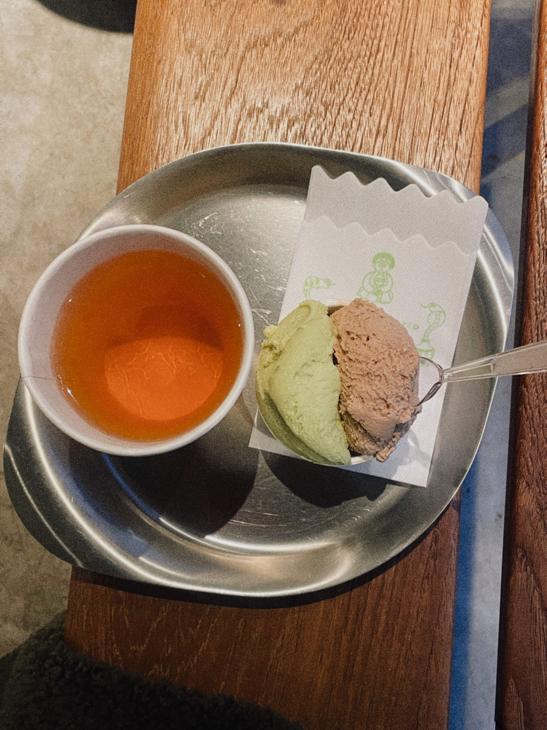 シンチェリータではカカオフェスティバルをやっていた!全部おいしそうで困ってしまう。パッとみて最初に気になったのは「ノワゼット塩キャラメルショコラ」。わたしは塩〇〇にめっぽう弱い。商品開発の会議でも、すぐに塩カスタードとか塩バニラとかを提案してしまいがち笑。迷いに迷って、最終的に「烏龍カカオ」を注文。もちろん、2種セットにして、もういっこは濃厚な「ピスタチオ」に(わたしはシンチェリータのピスタチオジェラートが大好きだ!!!!!)。コンコ堂とシンチェリータが同じ通り沿いにあるという奇跡。これはわたし的阿佐ヶ谷最強タッグが誕生したかもな。