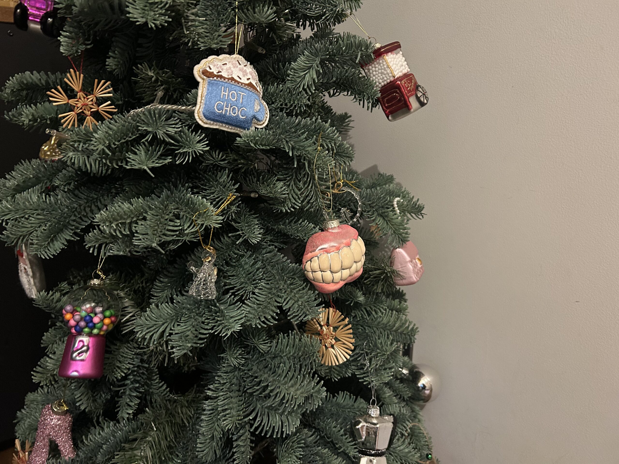新しく仲間入りしたホットチョコとサンタのオーナメント。あれ?サンタうつってないな!