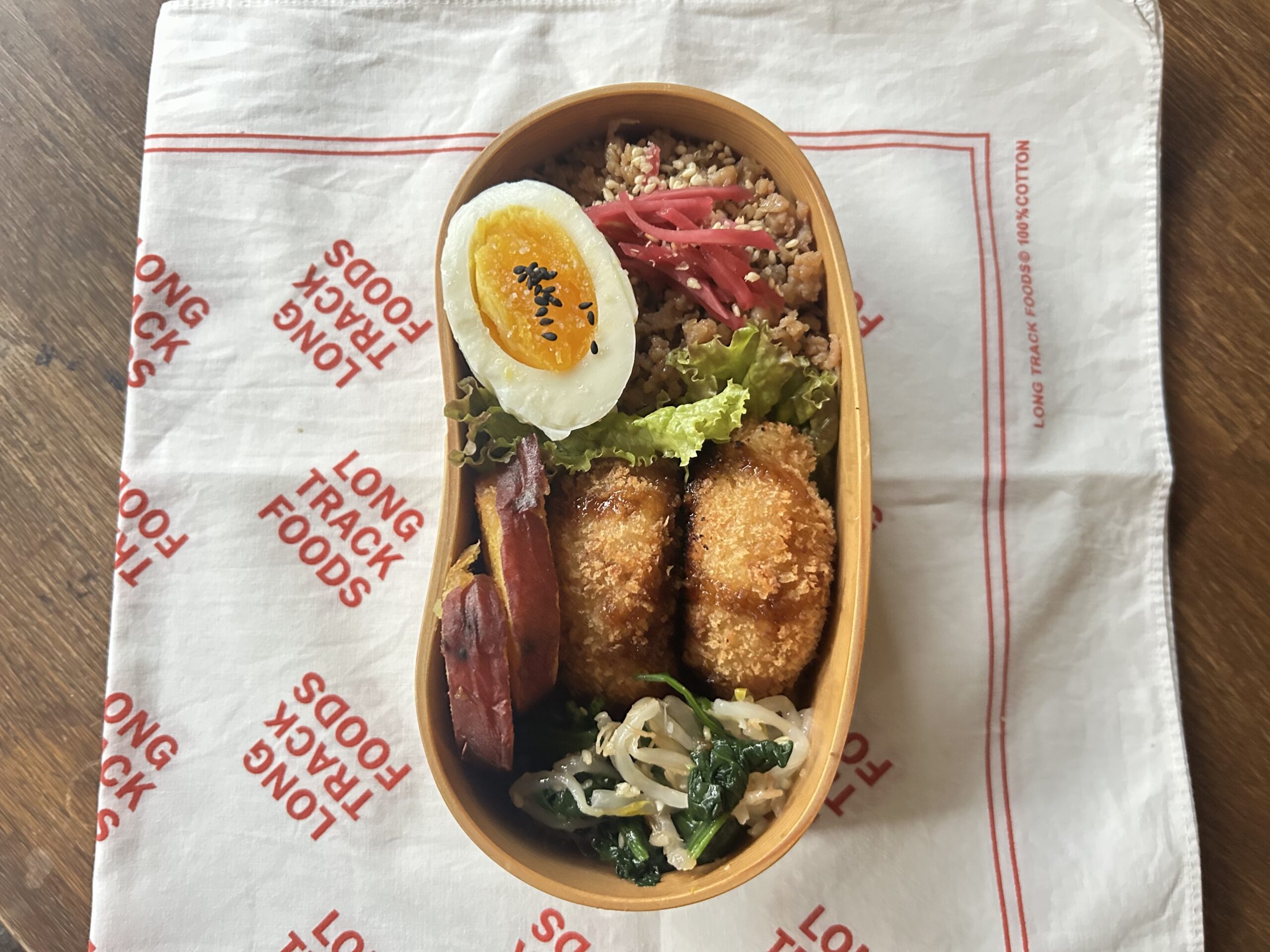 topは夫弁→鶏そぼろ弁当に。酢飯にするの忘れたー!これに豚汁とみかんをプラス!