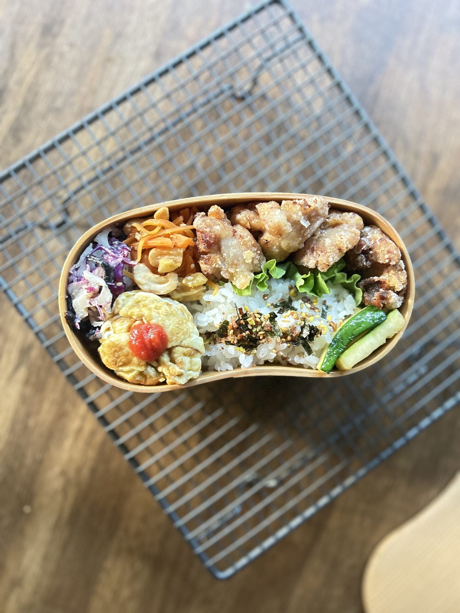 これは本当は2段のお弁当箱を1段で使っている。曲げわっぱで定着してきているから…そろそろ2個目を購入しても良いのでは?と…密かに母は考えている…ニヤリ