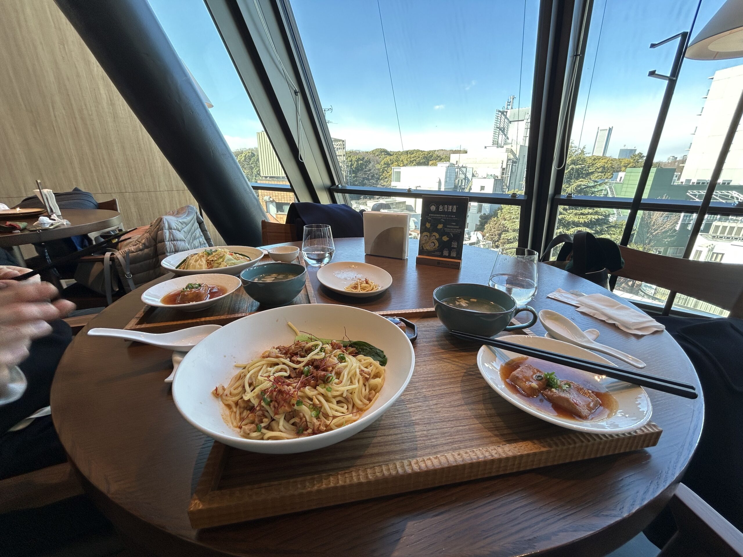 あ…写真!と食べる途中の一枚。窓側の席は奥に見えるのは明治神宮。麺を食べたけど、やっぱり私はココのビーフンが好きだな。