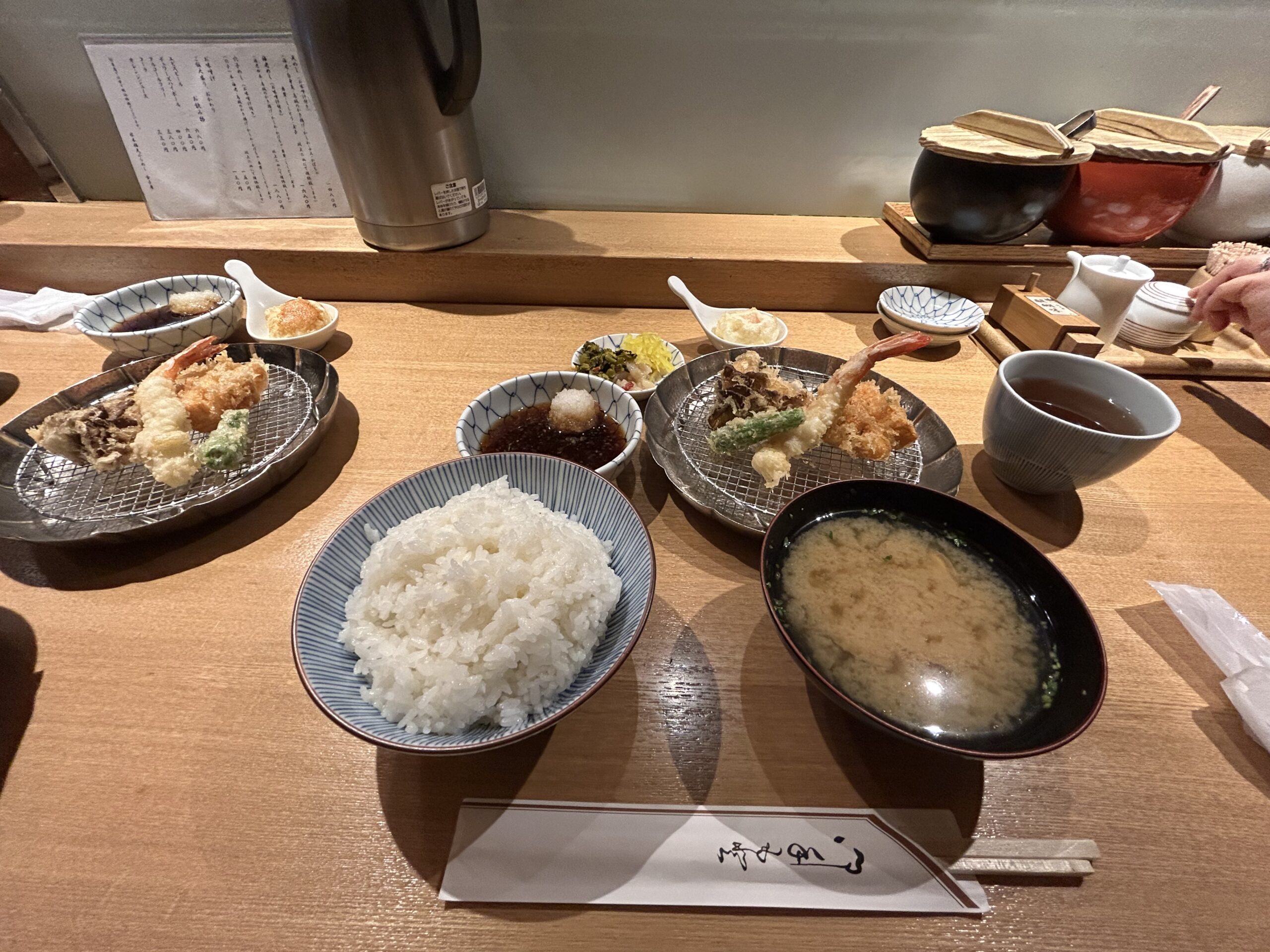 目の前で揚げてくれる天ぷら、お値段もお安く満足度が高い◎帰りがけに店員さんに聞いたら、職人さんが辞めてしまい1年半お休みしていたそう…夫曰く、前の職人さんが揚げてくれた天ぷらが感動あったと言ってた(本当かよ?笑) 長女に、お昼何食べたの?と聞かれ…。えー野菜とか海老とかお魚とかーと言ったら、天ぷらじゃん!!と当てられたー。彼女もココ好きだからね、今度は一緒にいこー。