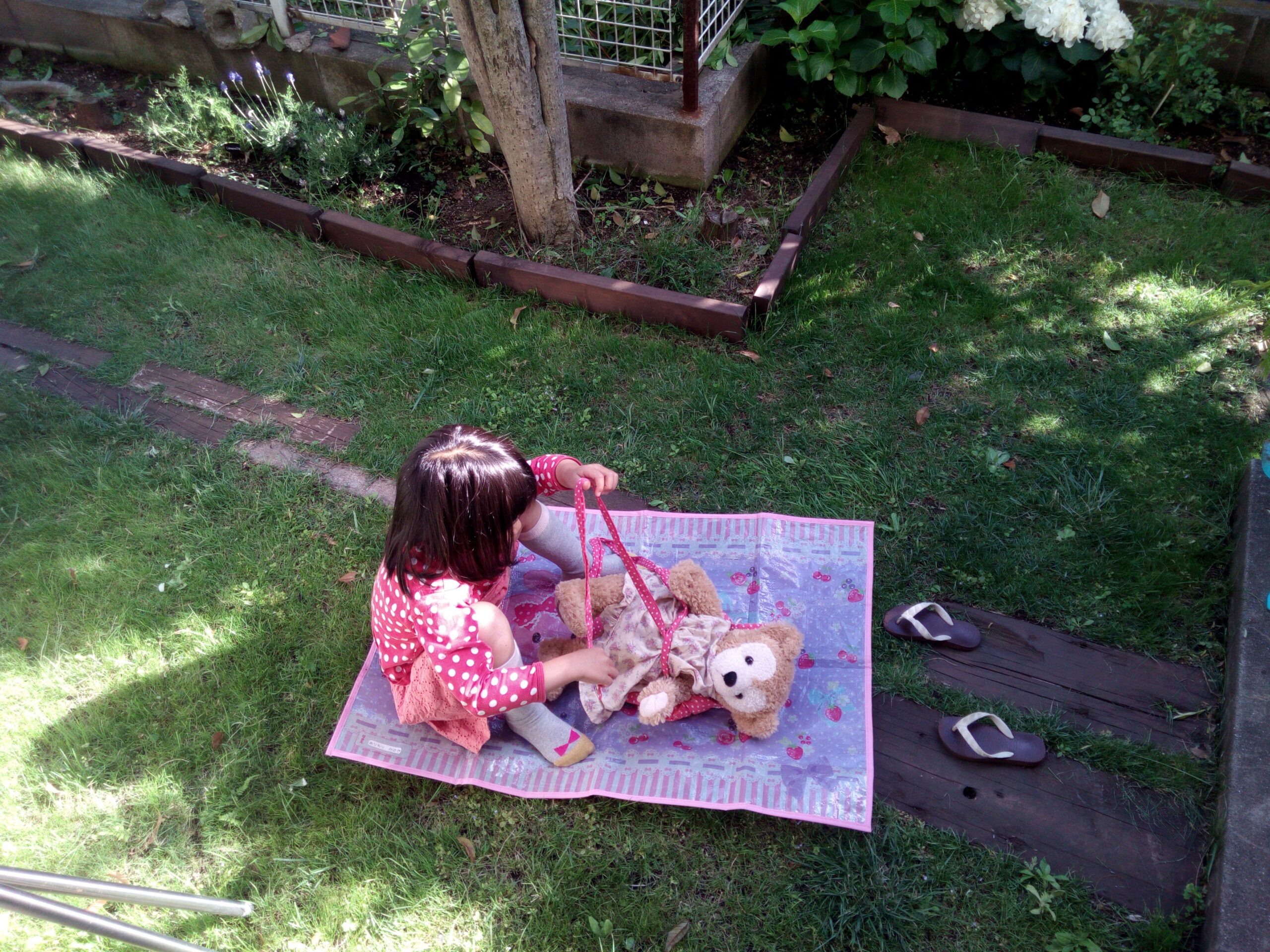 お庭にでて、何やらやっている次女。小さい時からお世話好きだったな…