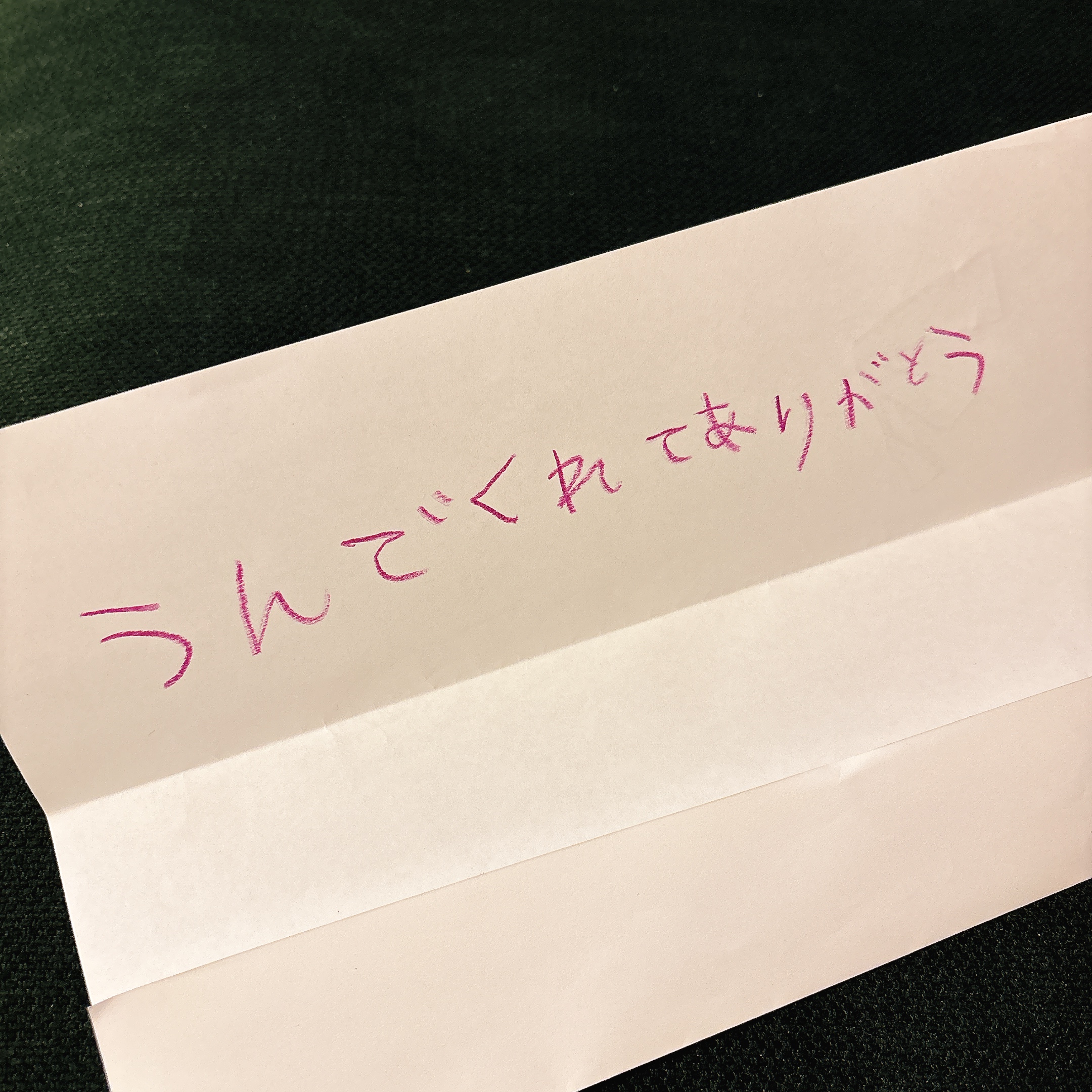 開いてみたら「うんでくれてありがとう」だって。急な特大の感謝に涙出そうじゃん。日記に書くよ。
