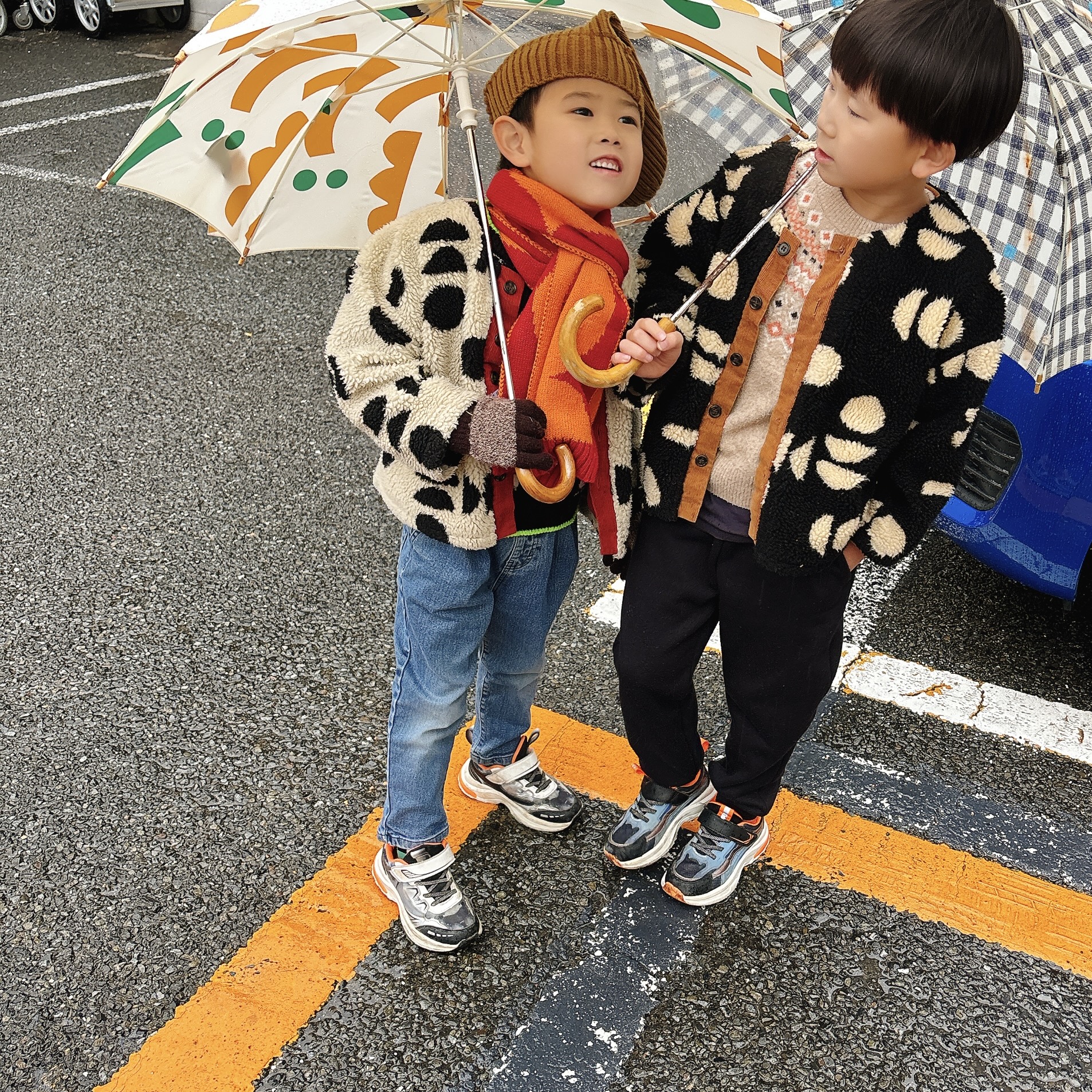 今朝はだいぶ寒い朝。雨もひどく、次男を造形教室に送るため、家の前のカーシェアを借りて車で向かうことにした。長男も来るというので家族みんなで駐車場まで向かう。
