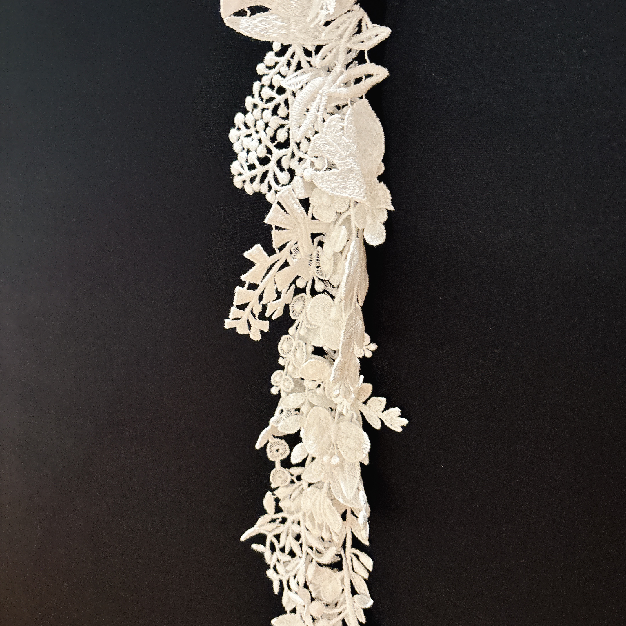 最初は今まで作られたテキスタイルがずらっと展示されており「かわいいー」とか「きれいー」とか。こんな感じで展示が進むのだろうと思っていたが、そのゾーンが終わったら、ミナペルホネンのものづくりを支えている日本の会社(町工場とでも表現するのがいいのかな)の紹介が続く。これがすごく面白くて。まるで手書きのような温かみのある刺繍やレース、絶妙な色味の染料のプリントなどが作られていく裏側が紹介される。それらは決してオートクチュールではなく、あくまでもレディメイドとして生産されるものたちであり、そのバランスをデザイナーさんと職人さんたちが探る姿に感銘をうける。