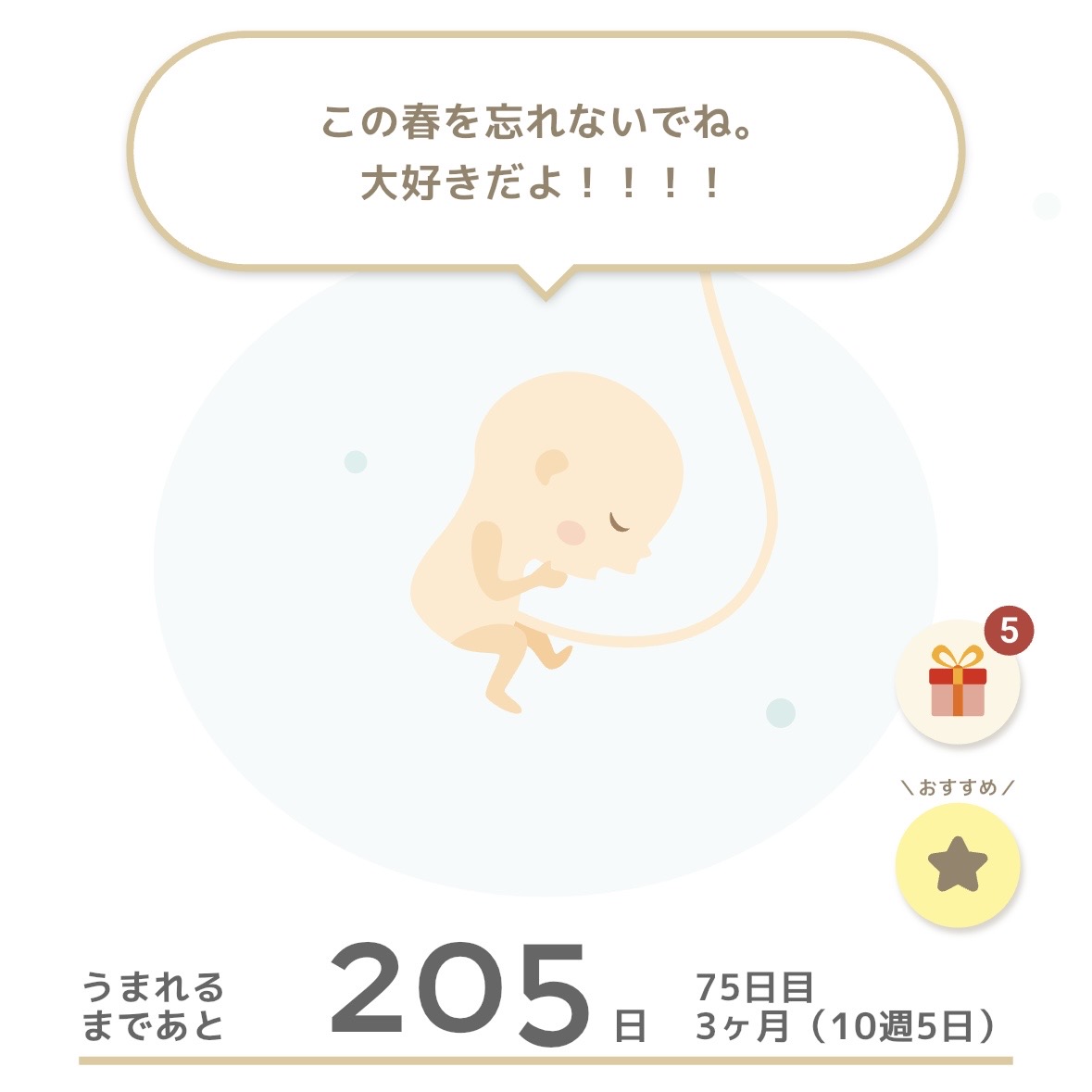 赤ちゃんの成長をイラストで表示しながら出産までカウントダウンしているアプリを使っている。そこには赤ちゃんからというていで様々な言葉が表示されるのだが、具体的なアドバイスとかに混じってメッセージ性の高い内容もあったりする。今日は「この春を忘れないでね」って表示されていた。忘れたくても忘れられないよ、この春のことも、こんなに辛かった(苦笑)結婚記念日のことも。