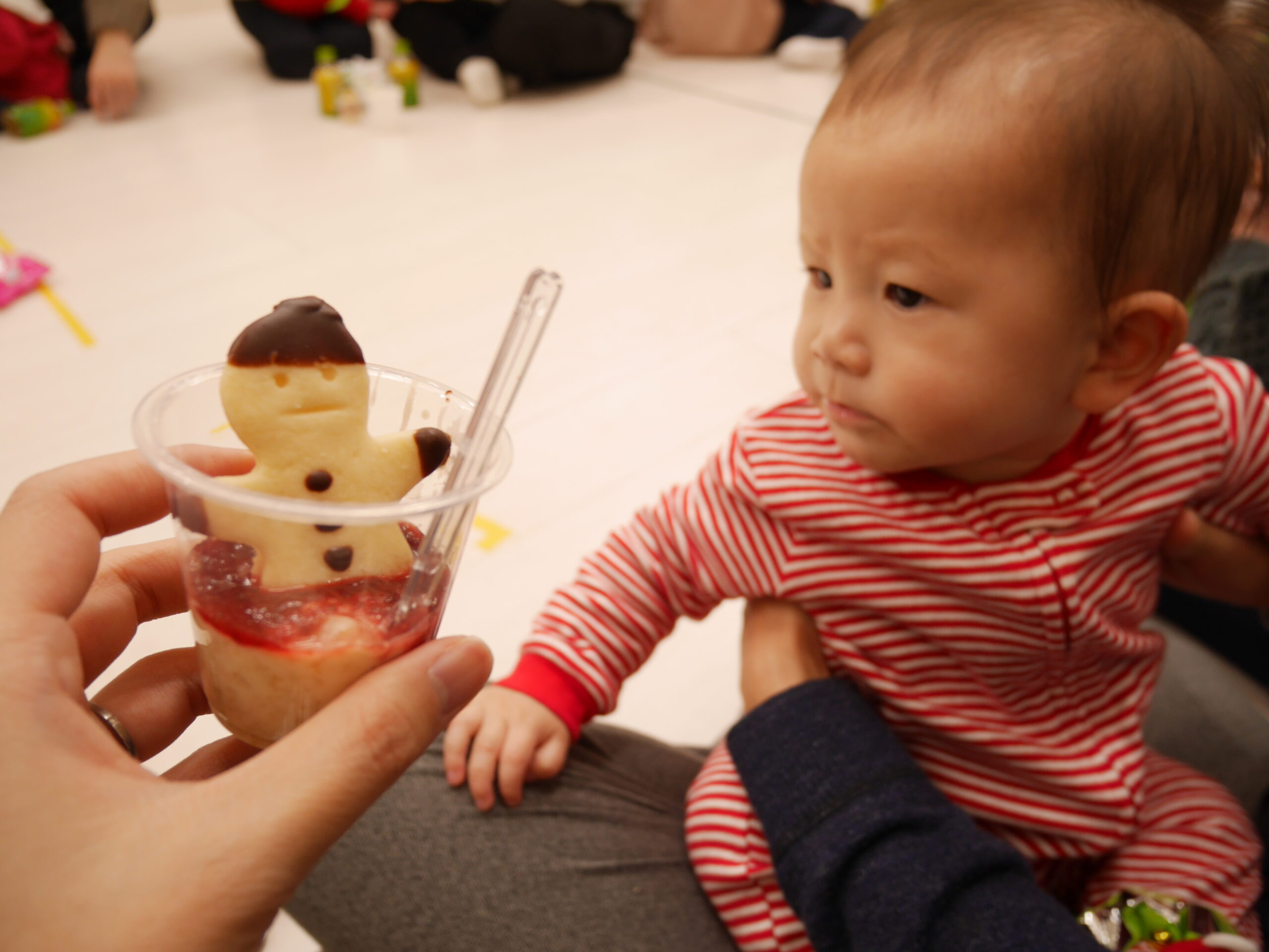 その園のクリスマス会で撮った写真。まだ0歳の長男